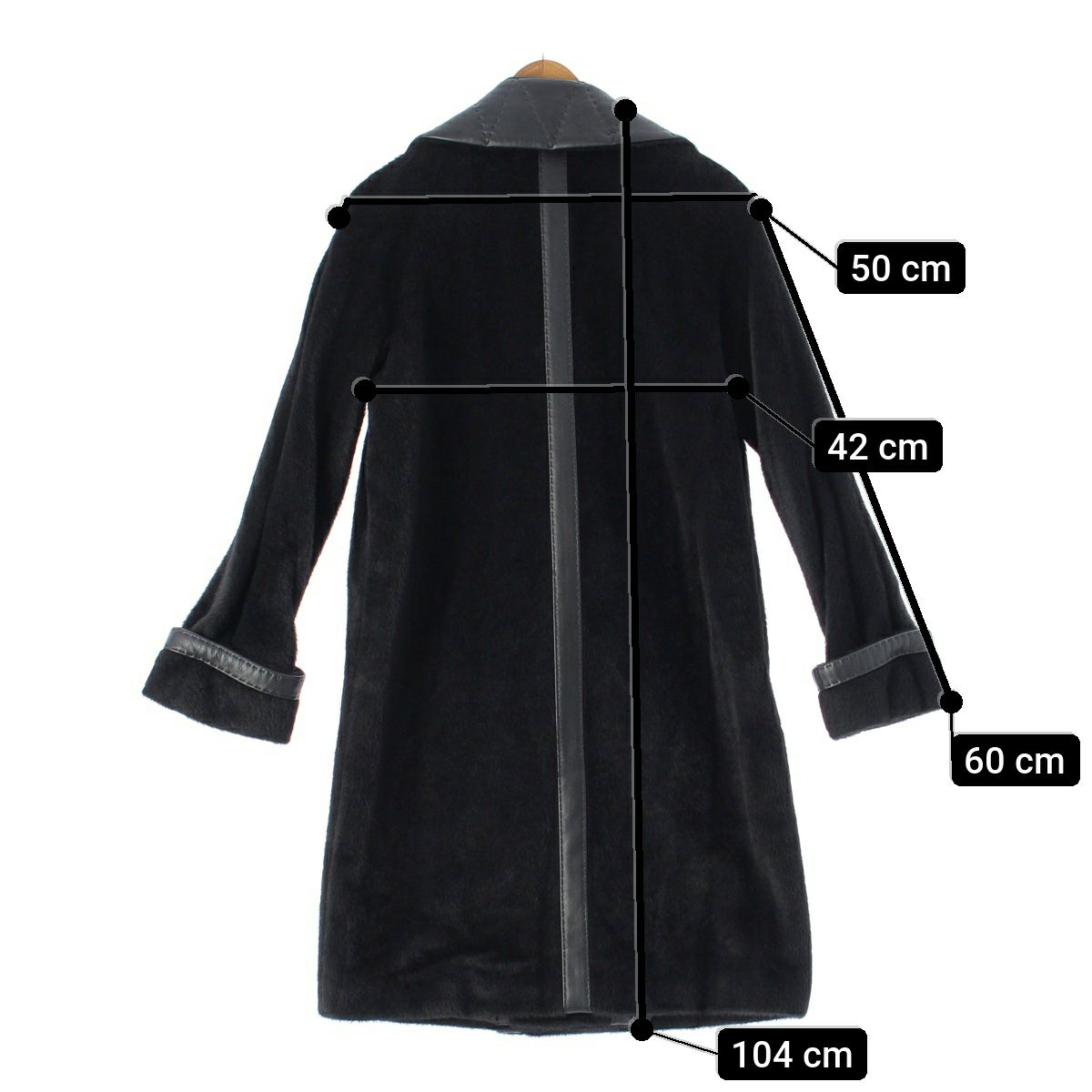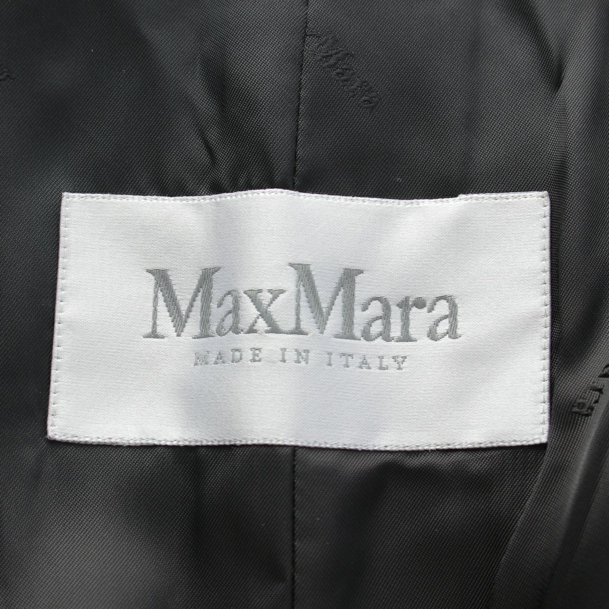 マックスマーラ アルパカ ヴァージンウール キルティングレザーカラー トリム ロング コート アウター ブラック 38