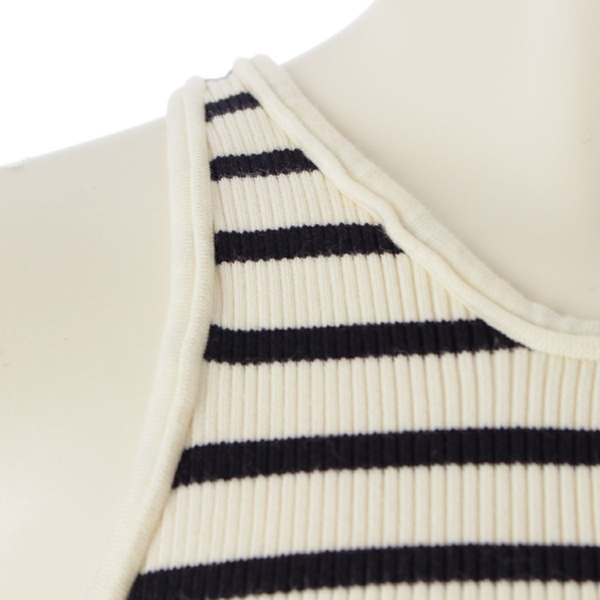 セリーヌ コットン ボーダー クロップド タンクトップ スポーツブラ トップス 2A22O372N ホワイト ブラック XS