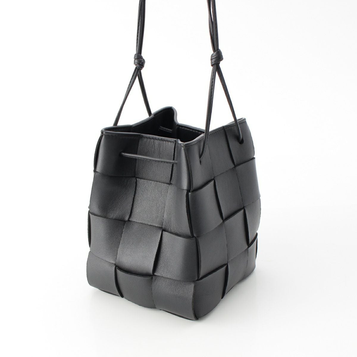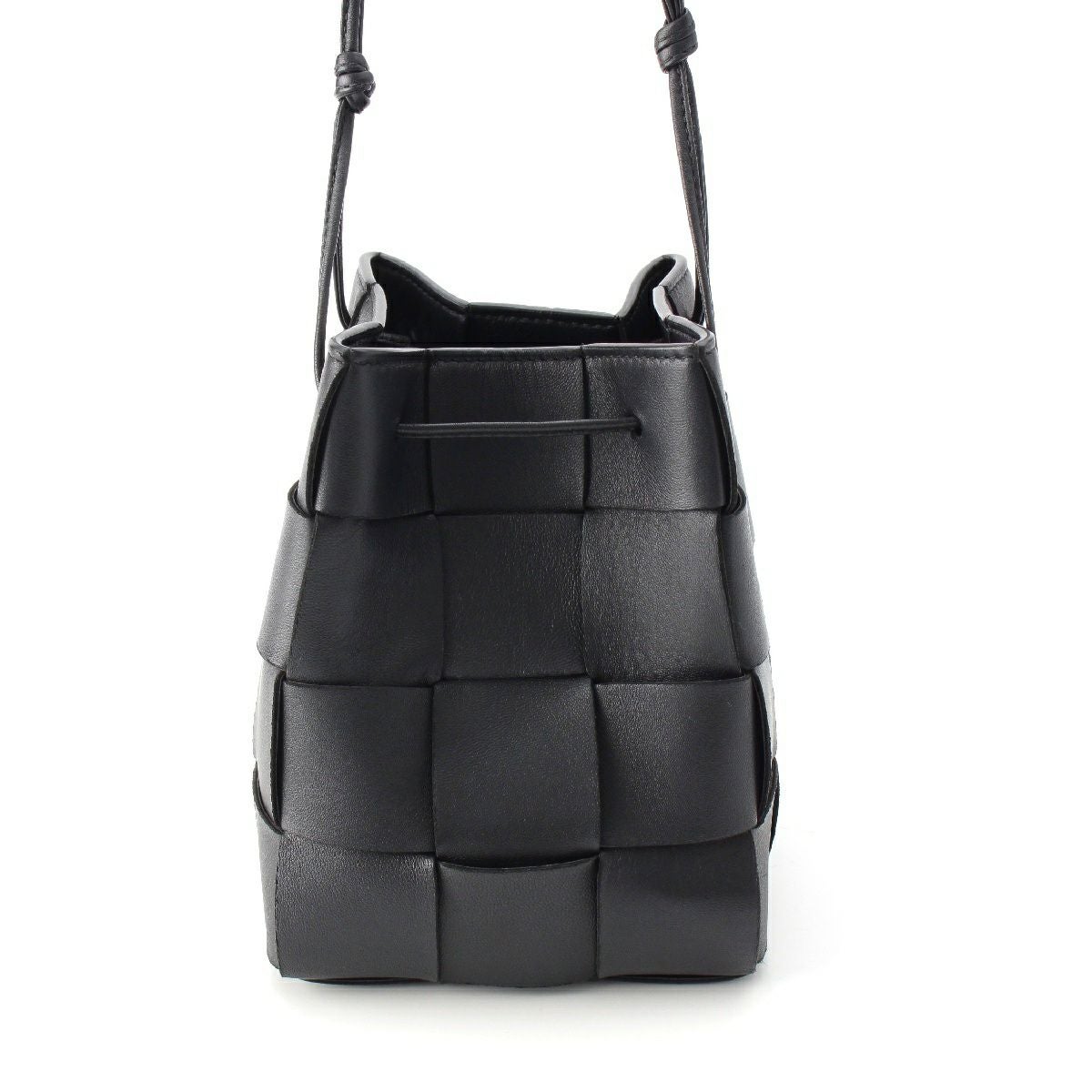 ボッテガヴェネタ スモール カセット レザー マキシイントレチャート バケット ショルダーバッグ クロスボディ 巾着 680218 ブラック
