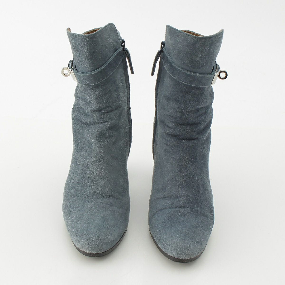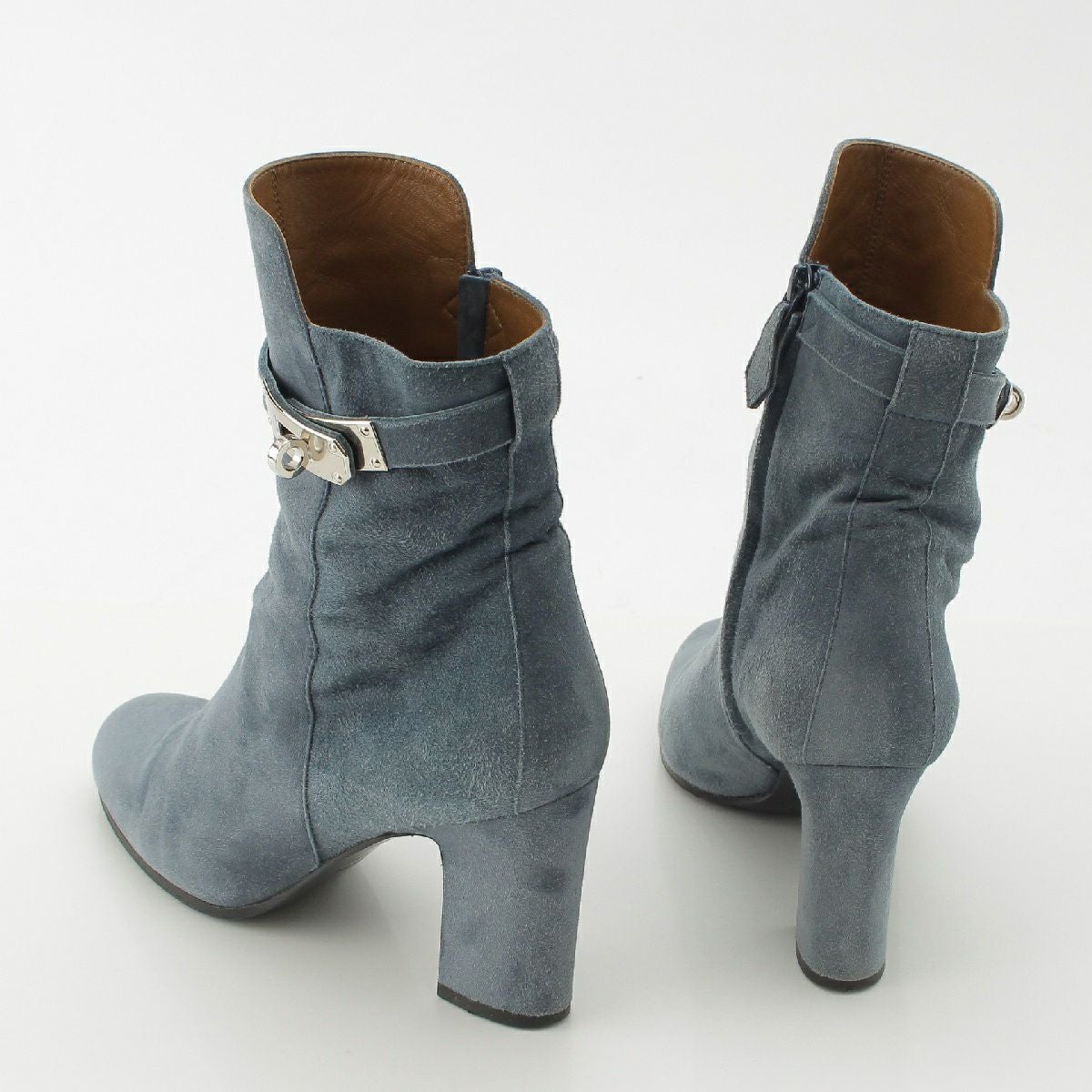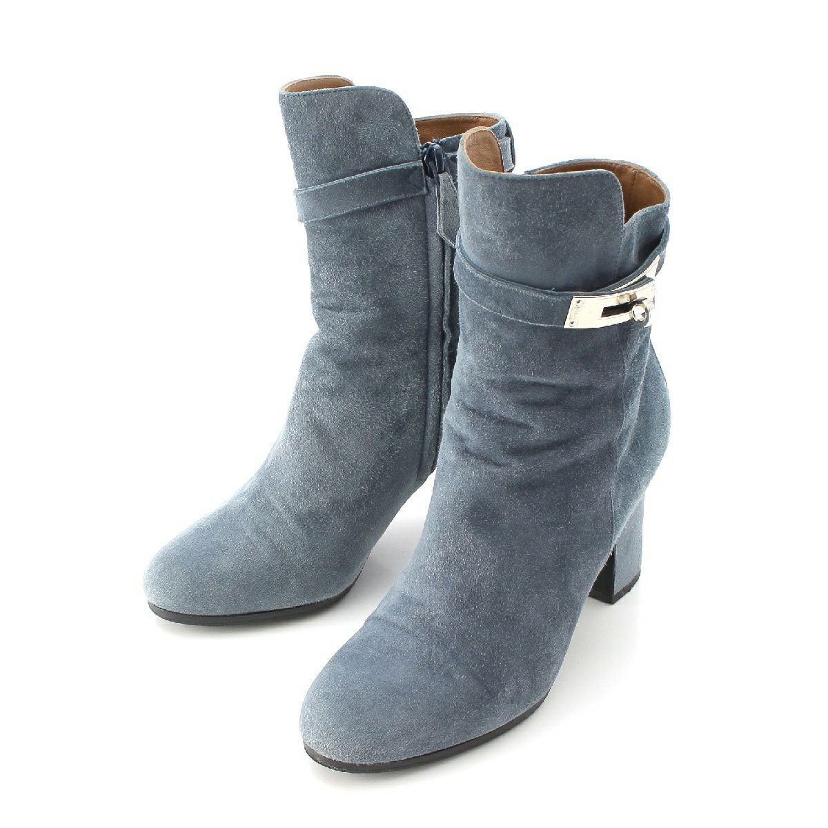 エルメス サンジェルマン スエードレザー ケリーバックル アンクル ショート ヒール ブーツ ブーティ― ブルー 37