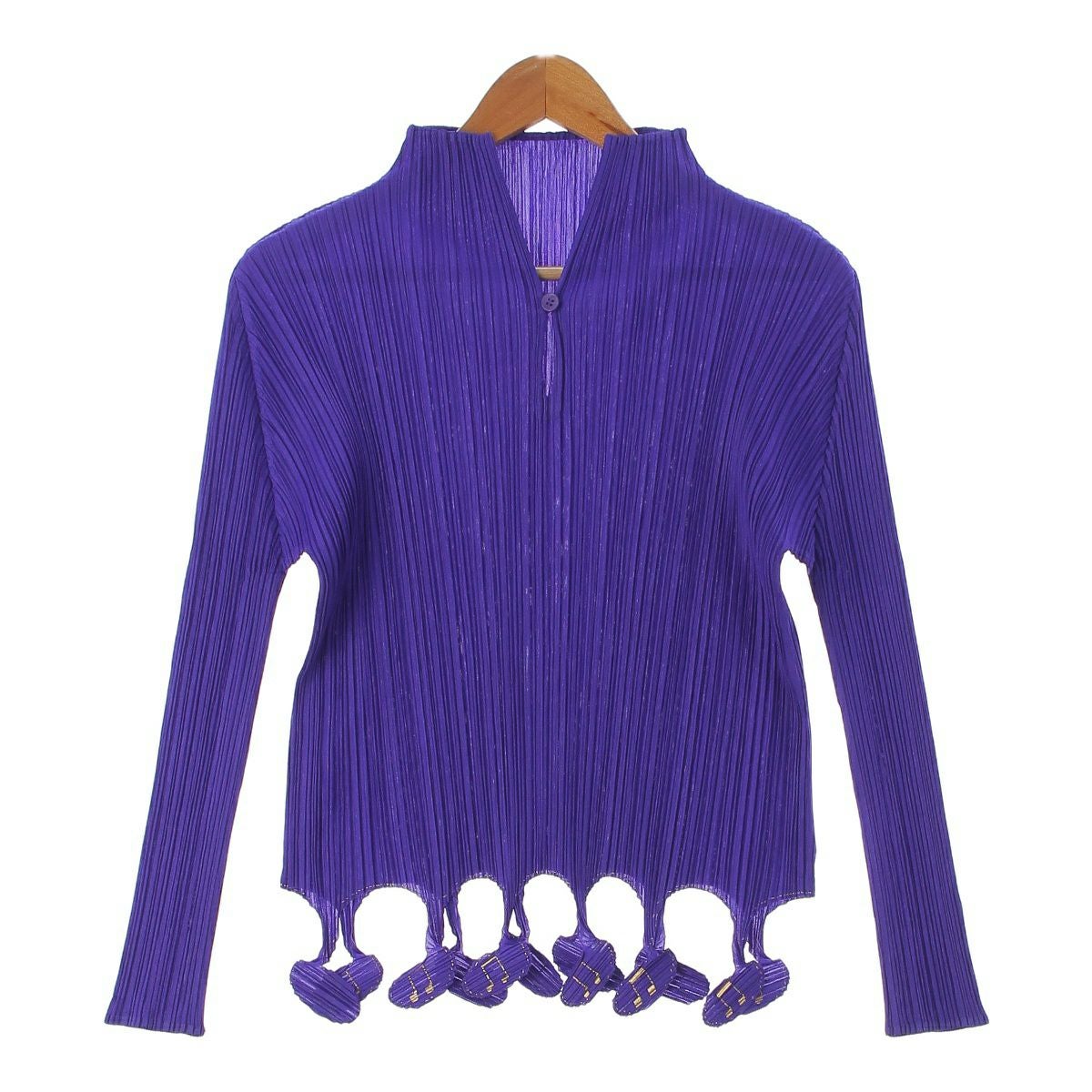 プリーツプリーズ イッセイミヤケ 音符 ハイネック フロントカット 長袖 トップス カットソー PP81-JK502 パープル ゴールド 3