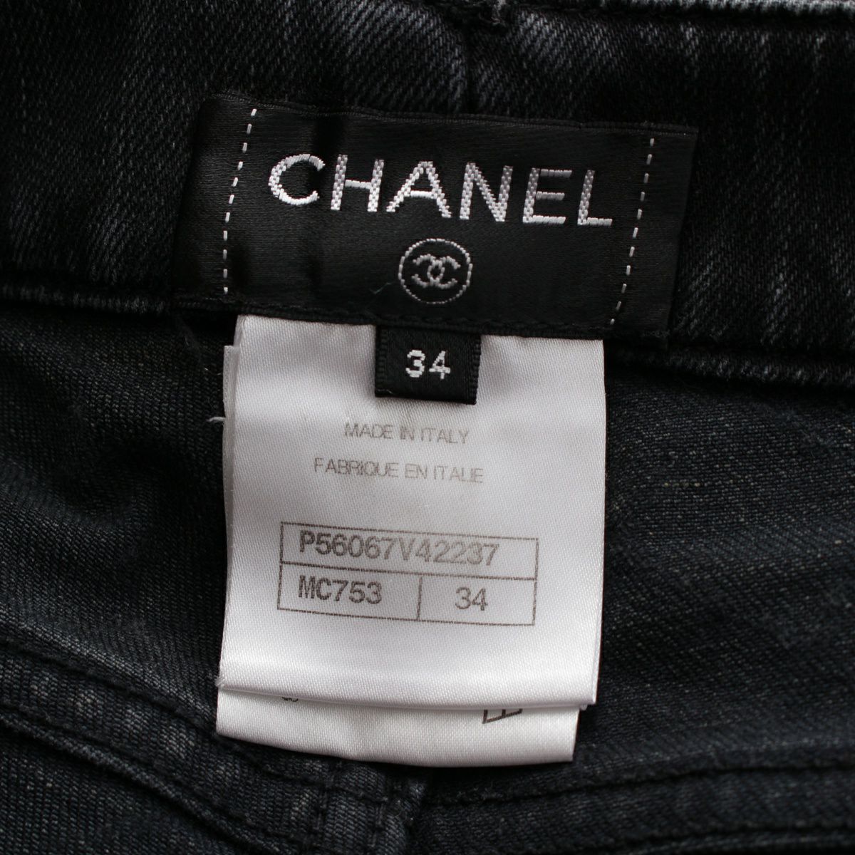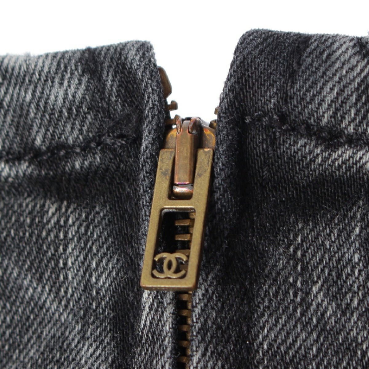 シャネル 17年 コットン マトラッセ 裾ジップ スキニー デニムパンツ ジーンズ ボトムス P56067 グレー 34