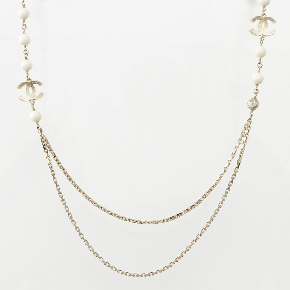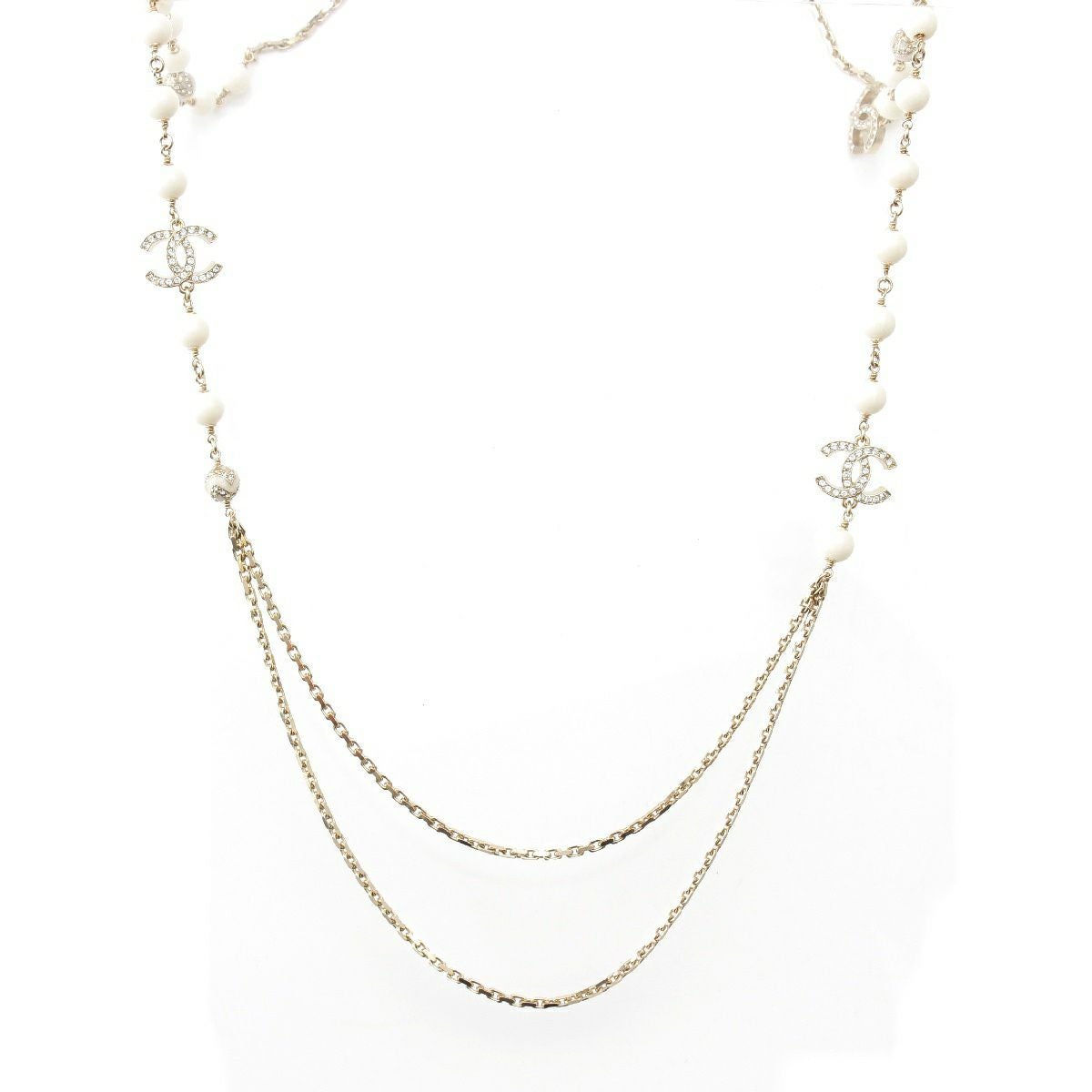 シャネル C23K ロング チェーンネックレス ココマーク ラインストーン パール ホワイト ゴールド