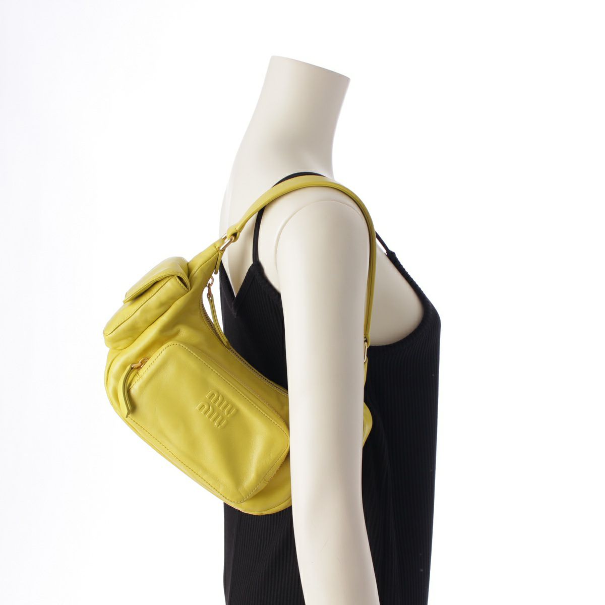 ミュウミュウ 24SS ポケットバッグ ナッパレザー ワンショルダー ハンドバッグ 5BC146 シトロンイエロー