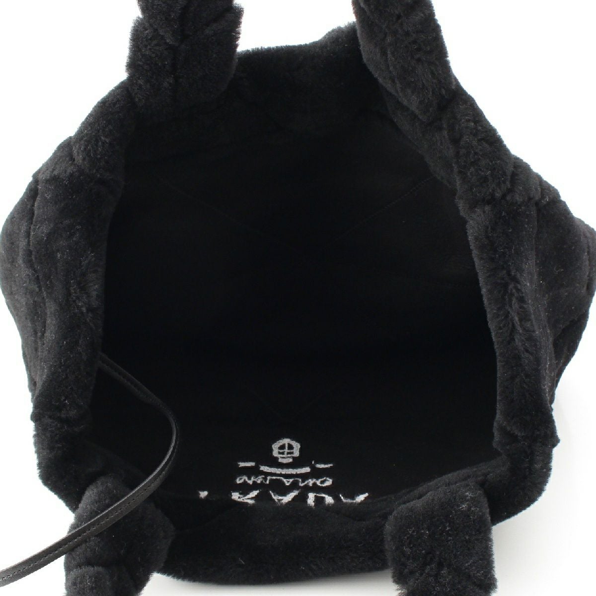 プラダ ムートン ロゴ シアリング ポーチ付き トートバッグ ハンドバッグ 1BG427 ブラック