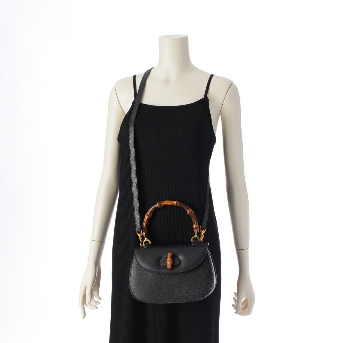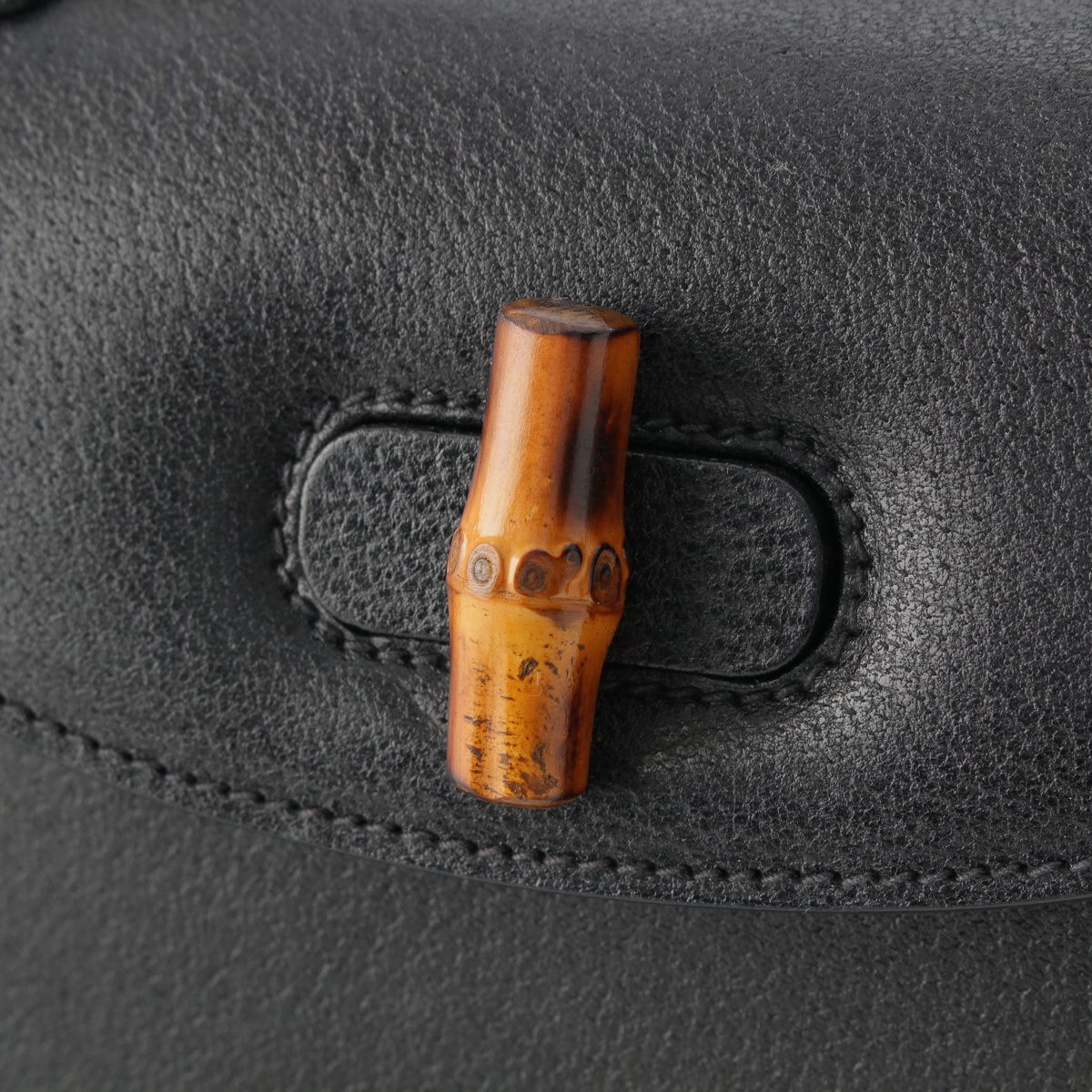 グッチ オールド レザー ヴィンテージ バンブー 2way ショルダー ハンドバッグ ブラック ゴールド金具