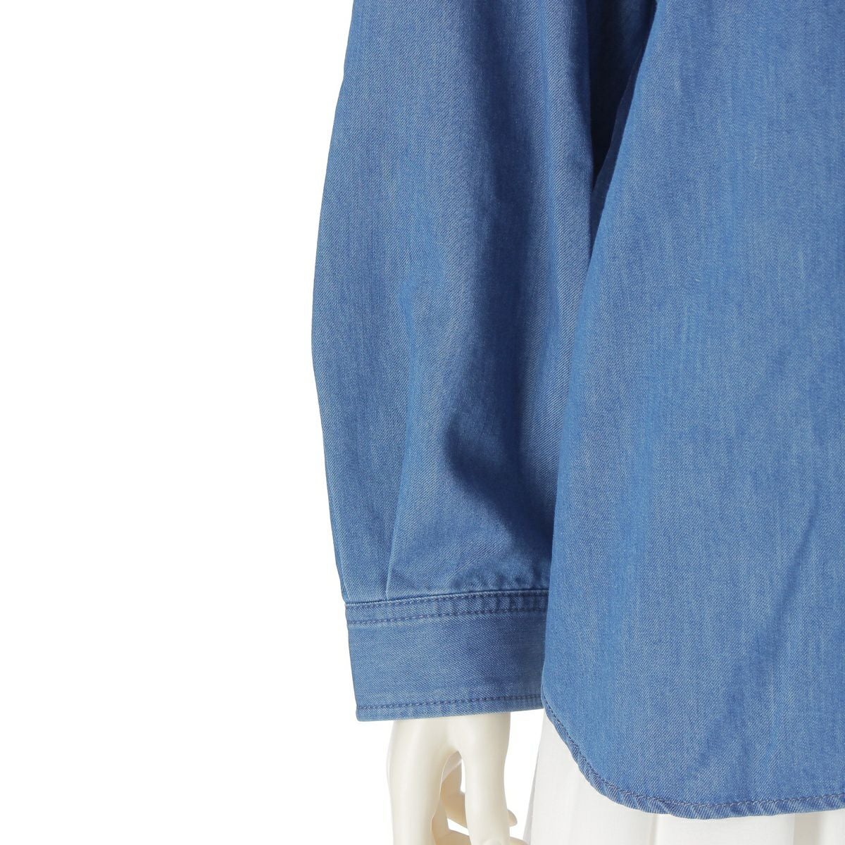 ドゥロワー 24SS コットン ラッフル デニム ノーカラー ブラウス 長袖シャツ 長袖 6511-299-0544 ブルー 36