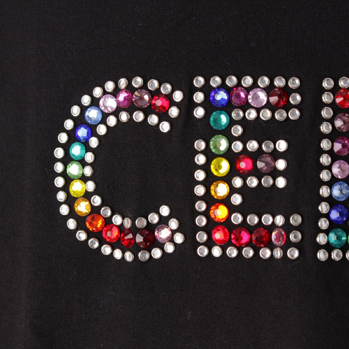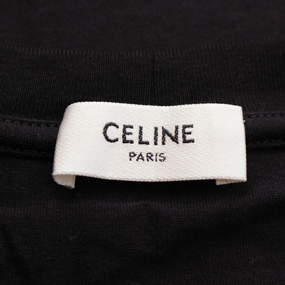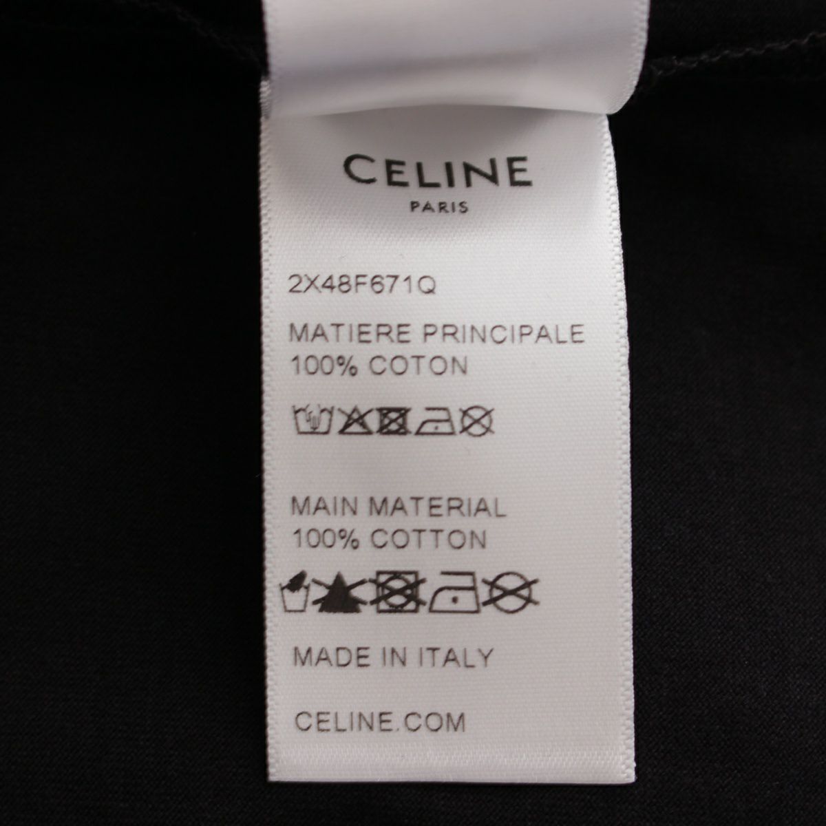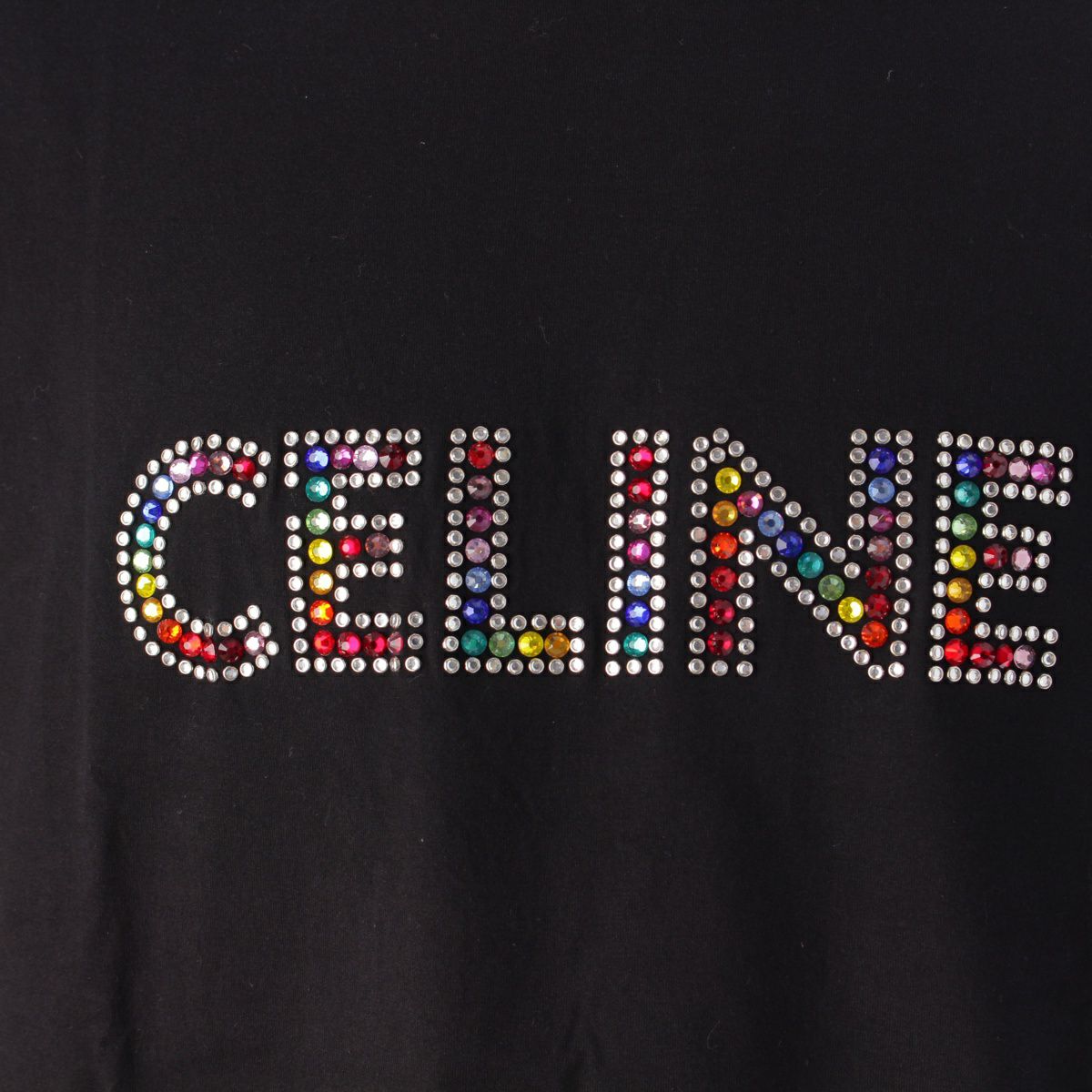 セリーヌ コットン ロゴ ラインストーン 半袖Tシャツ トップス カットソー 2X48F671Q ブラック L