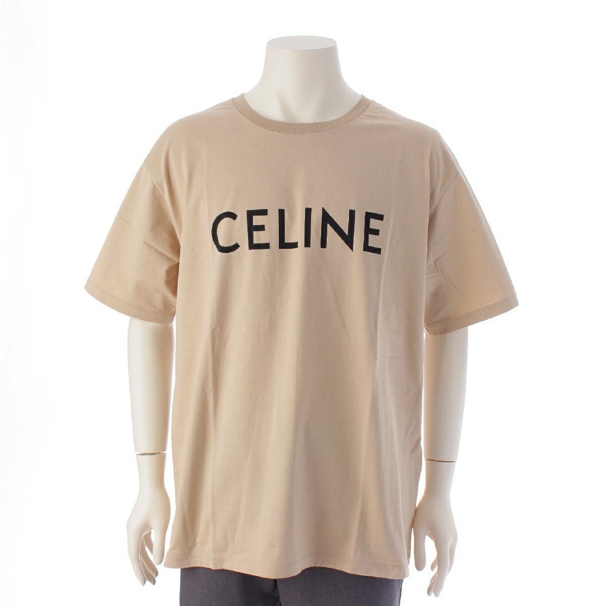 セリーヌ コットン ロゴプリント 半袖Tシャツ トップス カットソー 2X681671Q ベージュ L