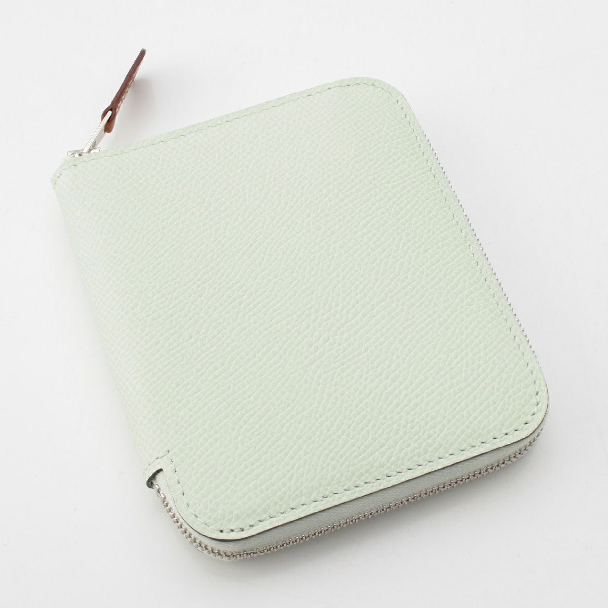 エルメス W刻印 アザップシルクインコンパクト ヴォーエプソン ラウンドファスナー コインケース ウォレット ヴェールフィズ ミント シルバー金具