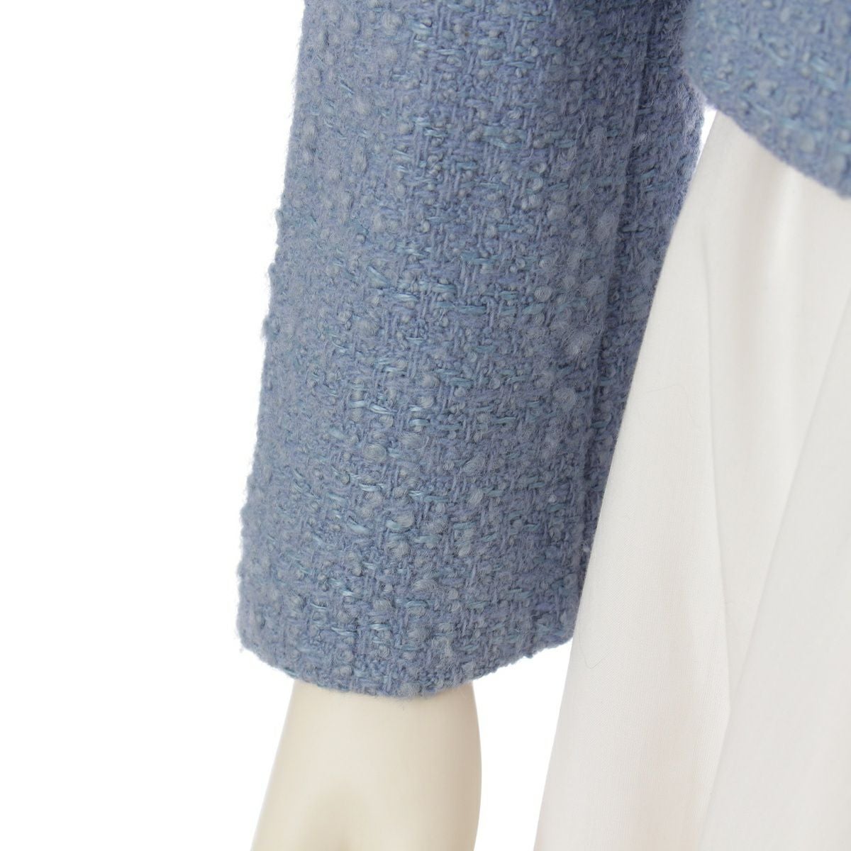 セリーヌ ウール 馬車裏地 金ボタン プレーンツイードシャスール ノーカラージャケット 2V83C739P ライトブルー 36