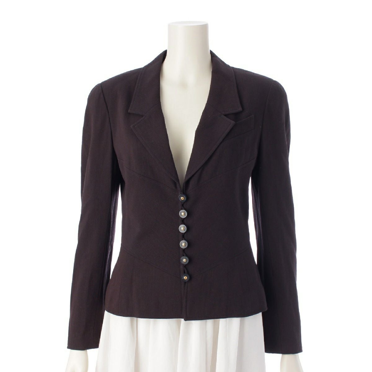 シャネル 97P ウール ヴィンテージ ロゴボタン ココマーク裏地 シングル テーラードジャケット P07517 ブラック 38