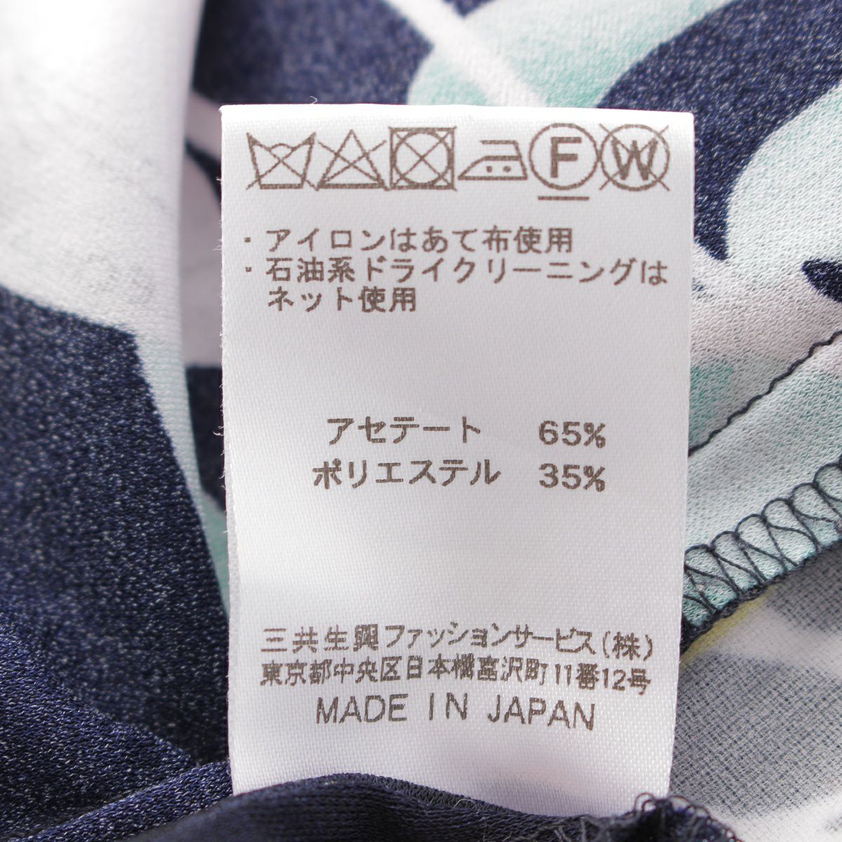 レオナール カンカン素材 花柄 プリント 七分袖 ひざ丈 ワンピース ドレス ブラック×ホワイト×イエロー 36