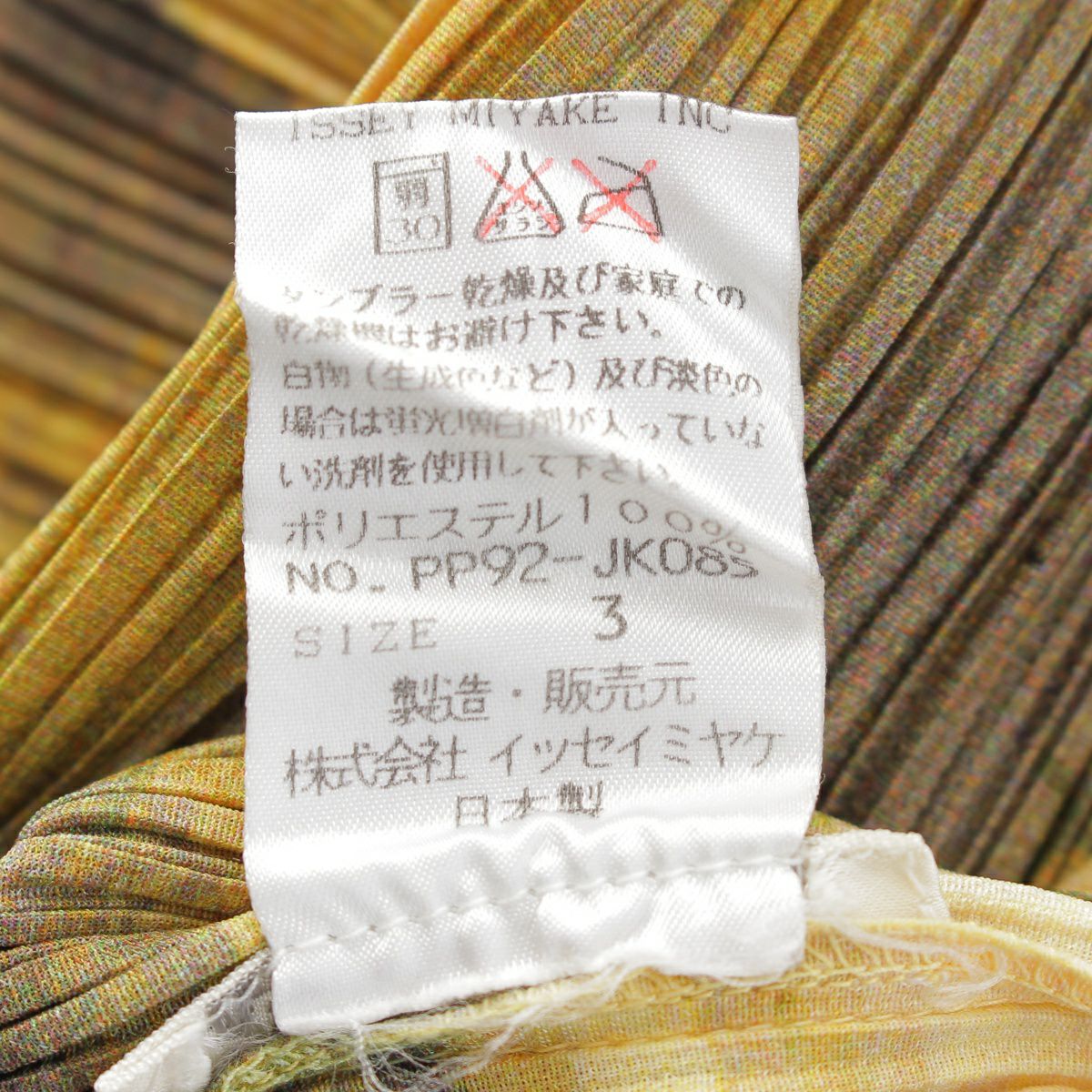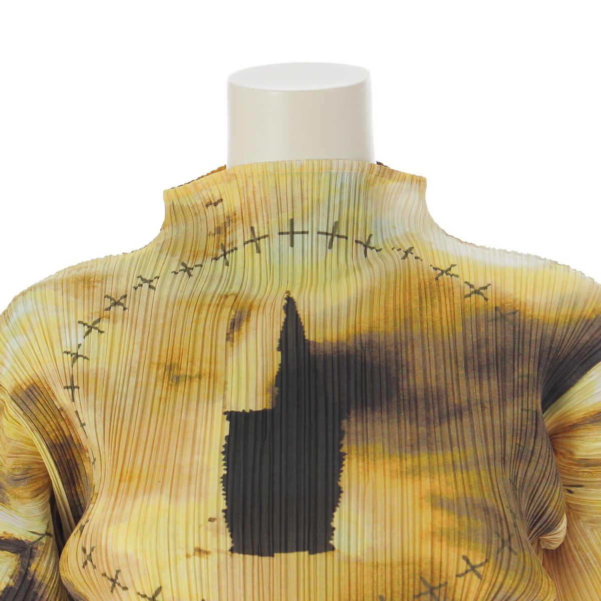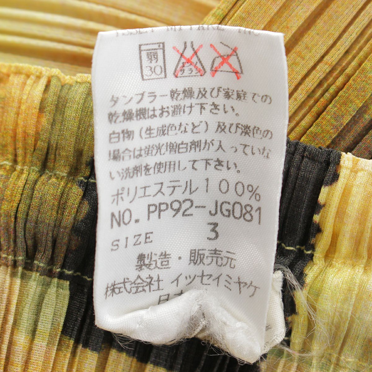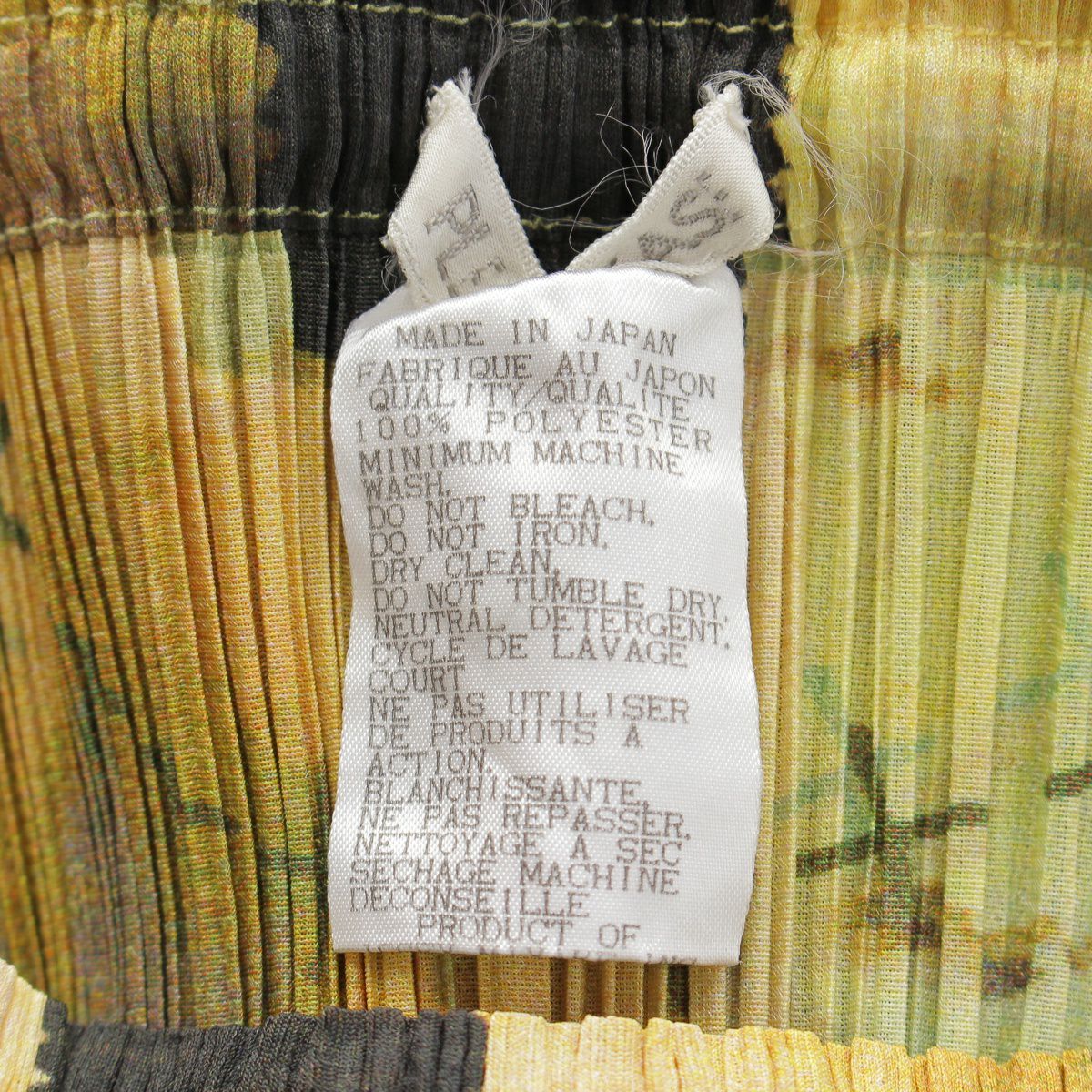 プリーツプリーズ イッセイミヤケ 1999 ボトルネック 総柄 トップス スカートセットアップ 半袖 ロング丈 PP92-JK085/PP92-JG081 イエロー系マルチカラー 3