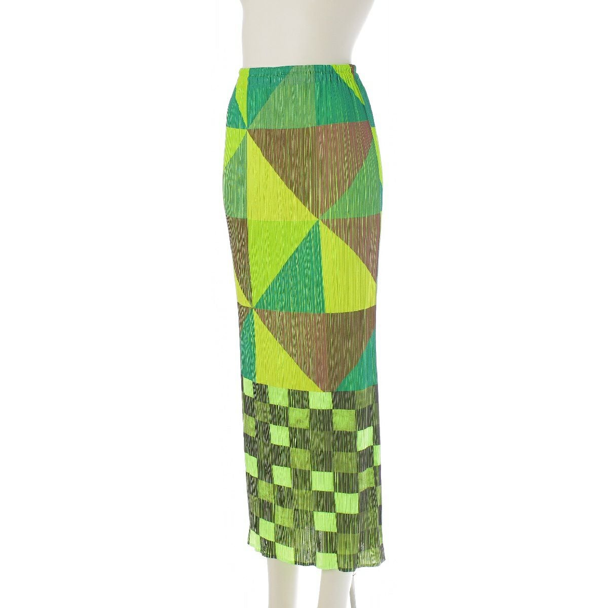 プリーツプリーズ イッセイミヤケ 1997 ヴィンテージ ウェーブチェック柄 トップス スカートセットアップ ノースリーブ ミディ丈 PP78-JK700/PP78-JG713 グリーン 3