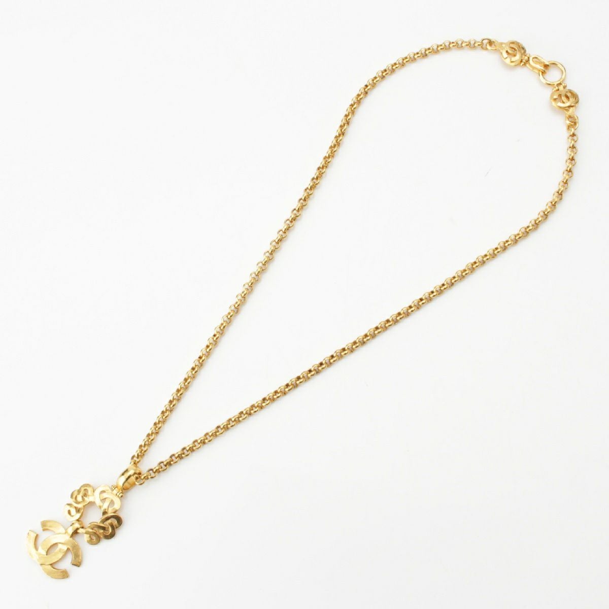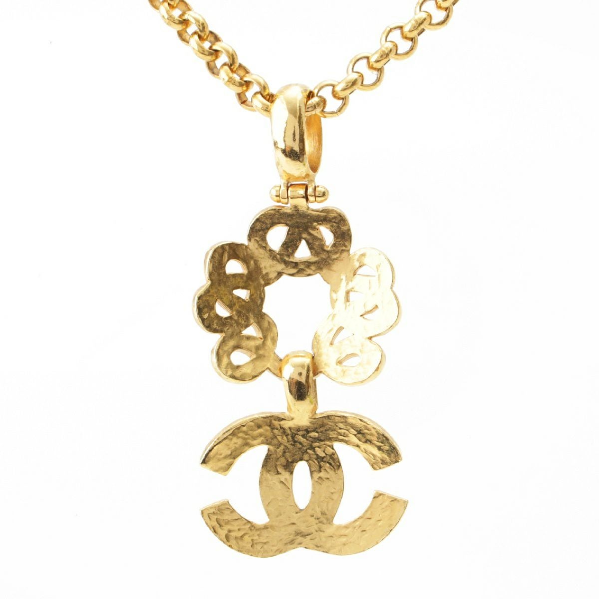 シャネル 97P ヴィンテージ ココマーク リーフモチーフ チェーン ネックレス ペンダント アクセサリー ゴールド