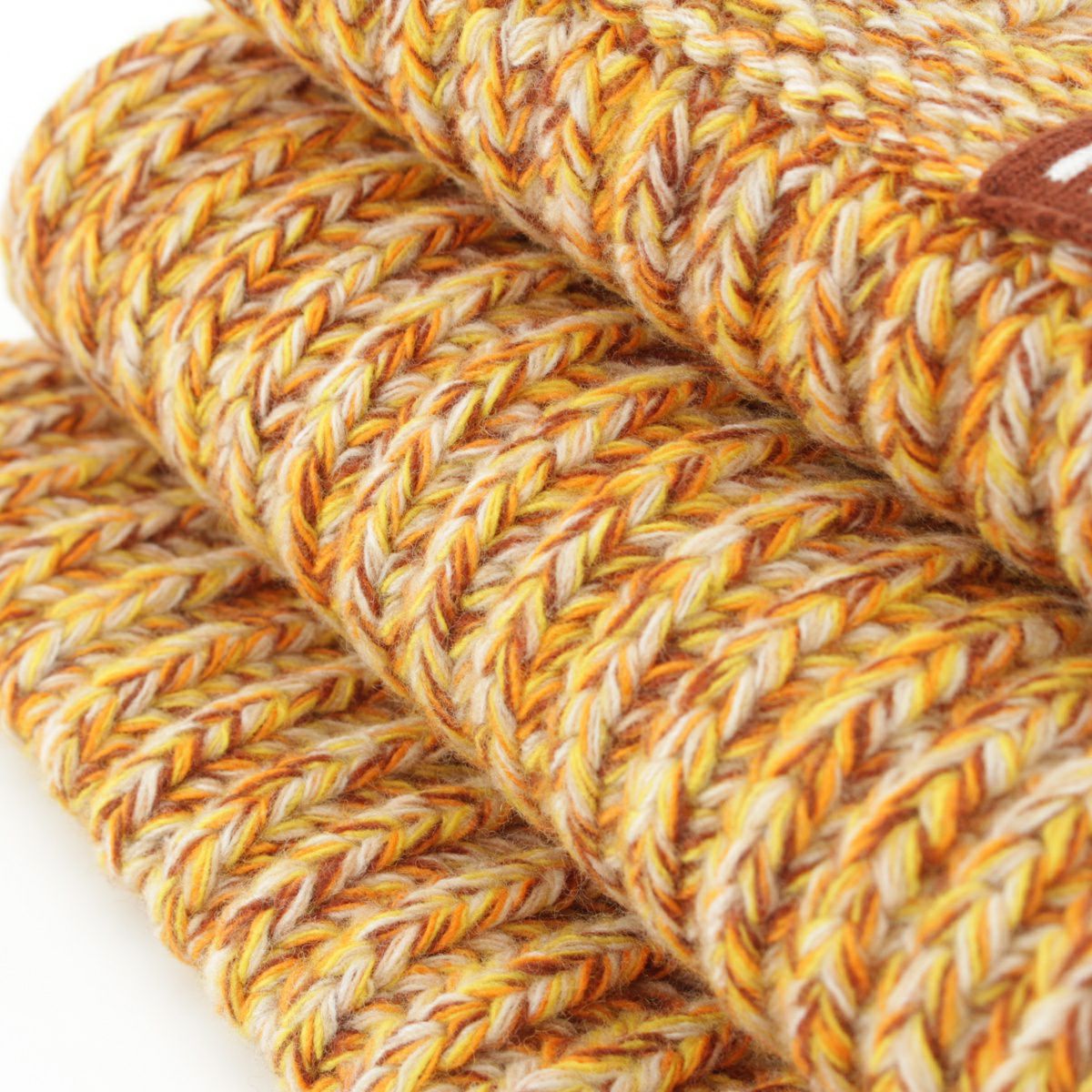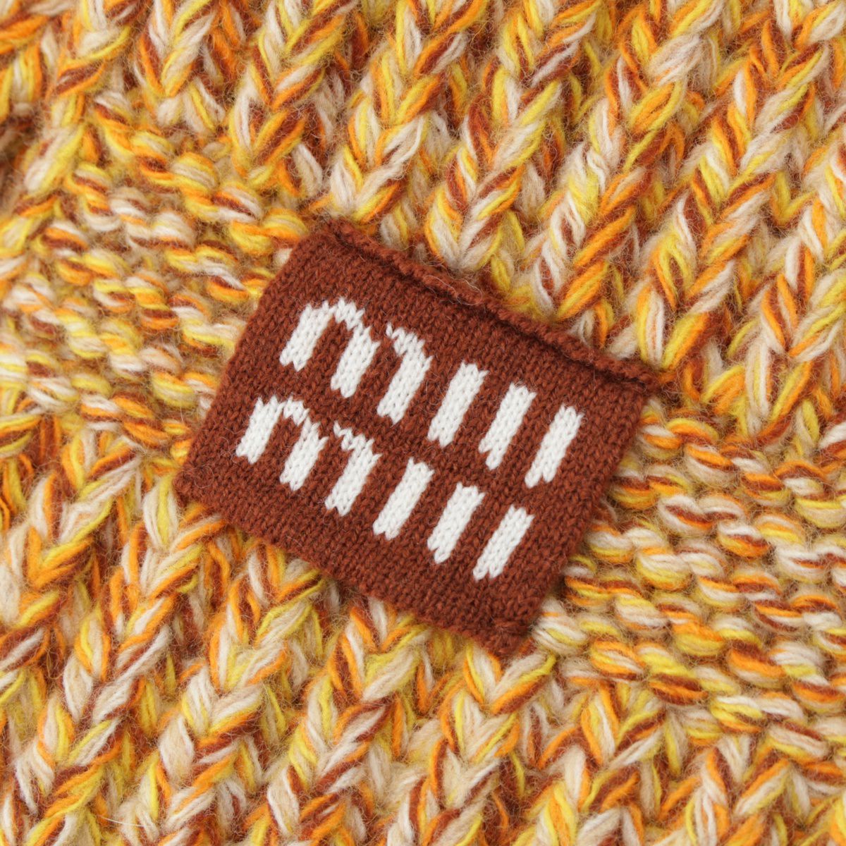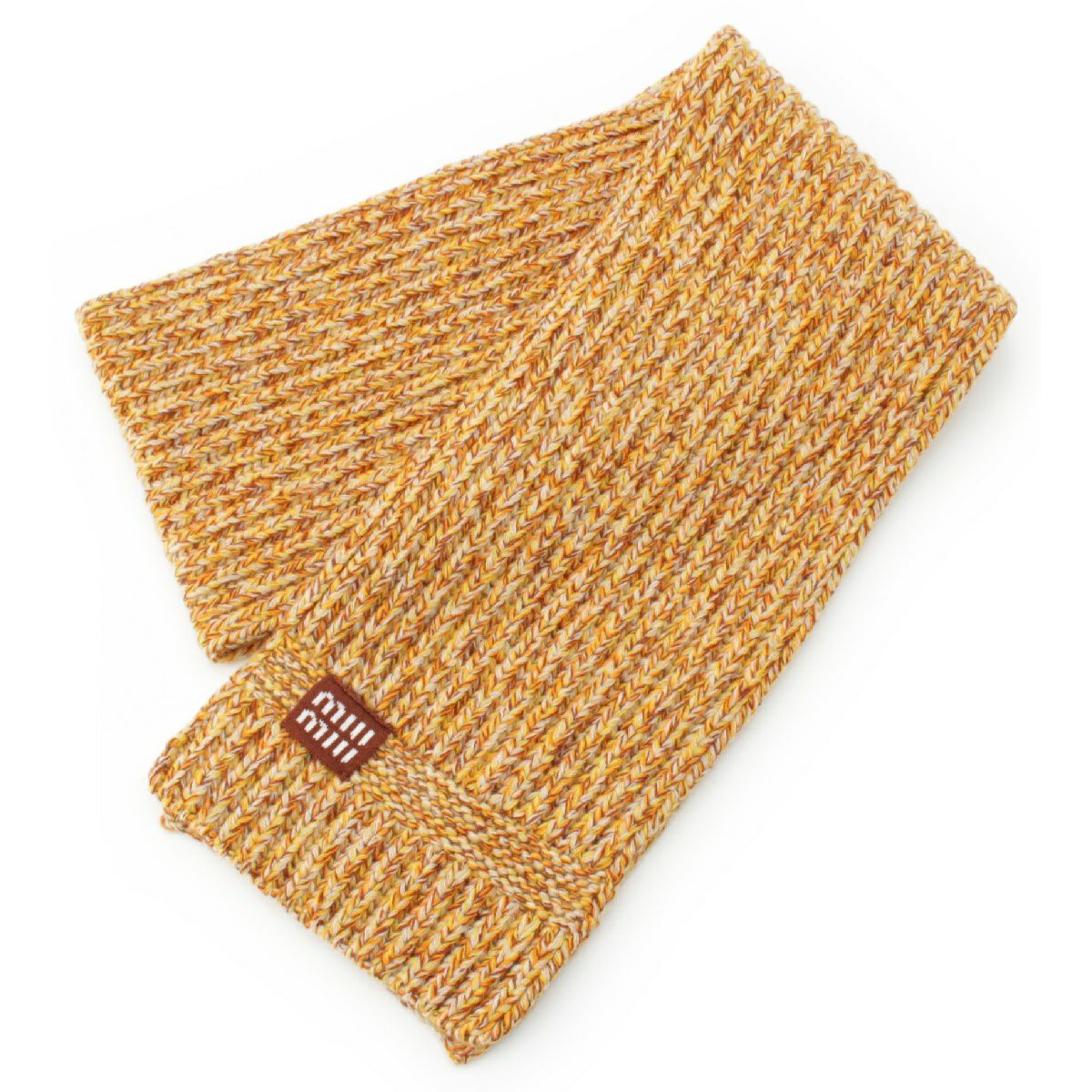 ミュウミュウ 23AW カシミヤ ウール ロゴパッチ メランジニット マフラー ストール 5FS048 イエロー ブラウン