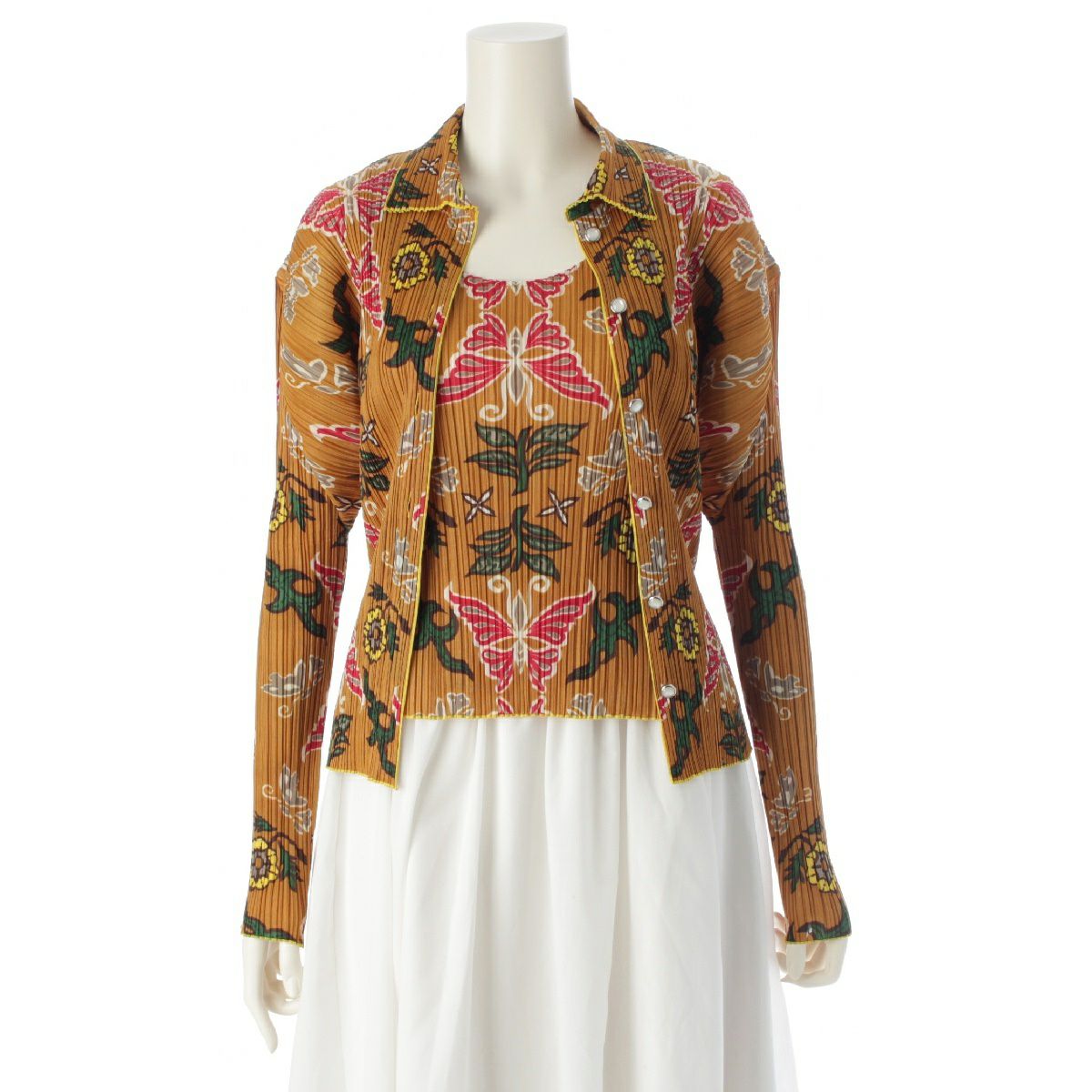 プリーツプリーズ イッセイミヤケ 花 蝶 フラワー 総柄 アンサンブル ノースリーブ シャツ ブラウス PP92-JK023 PP92-JK025 ブラウン 3