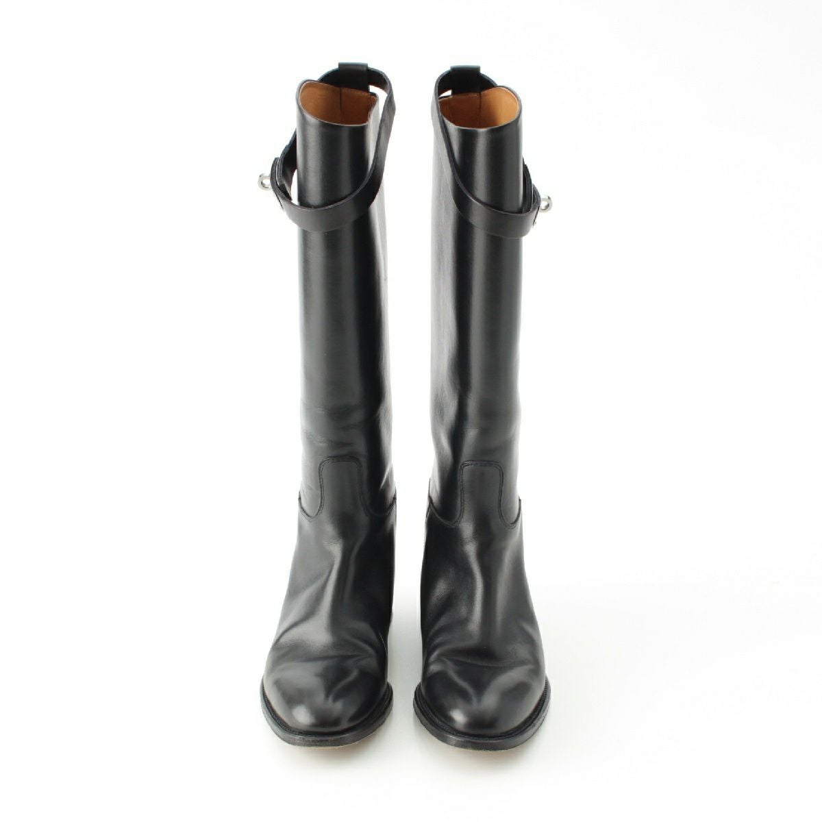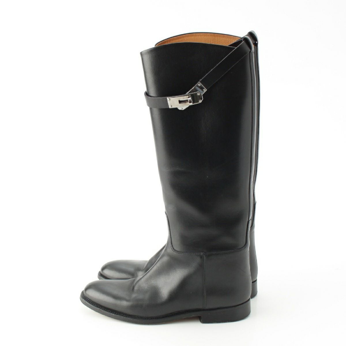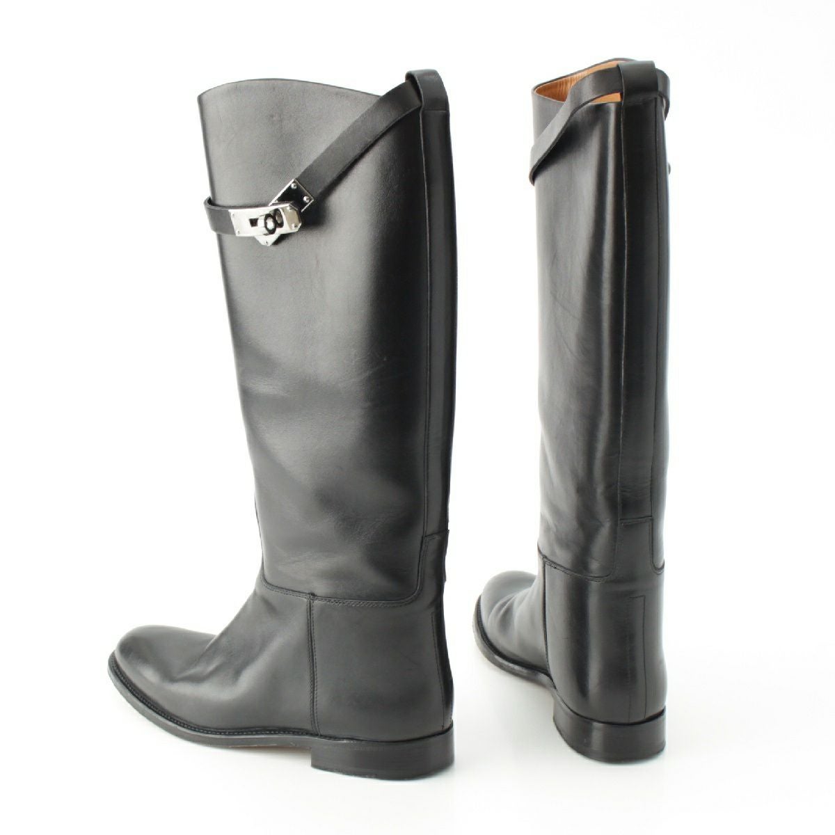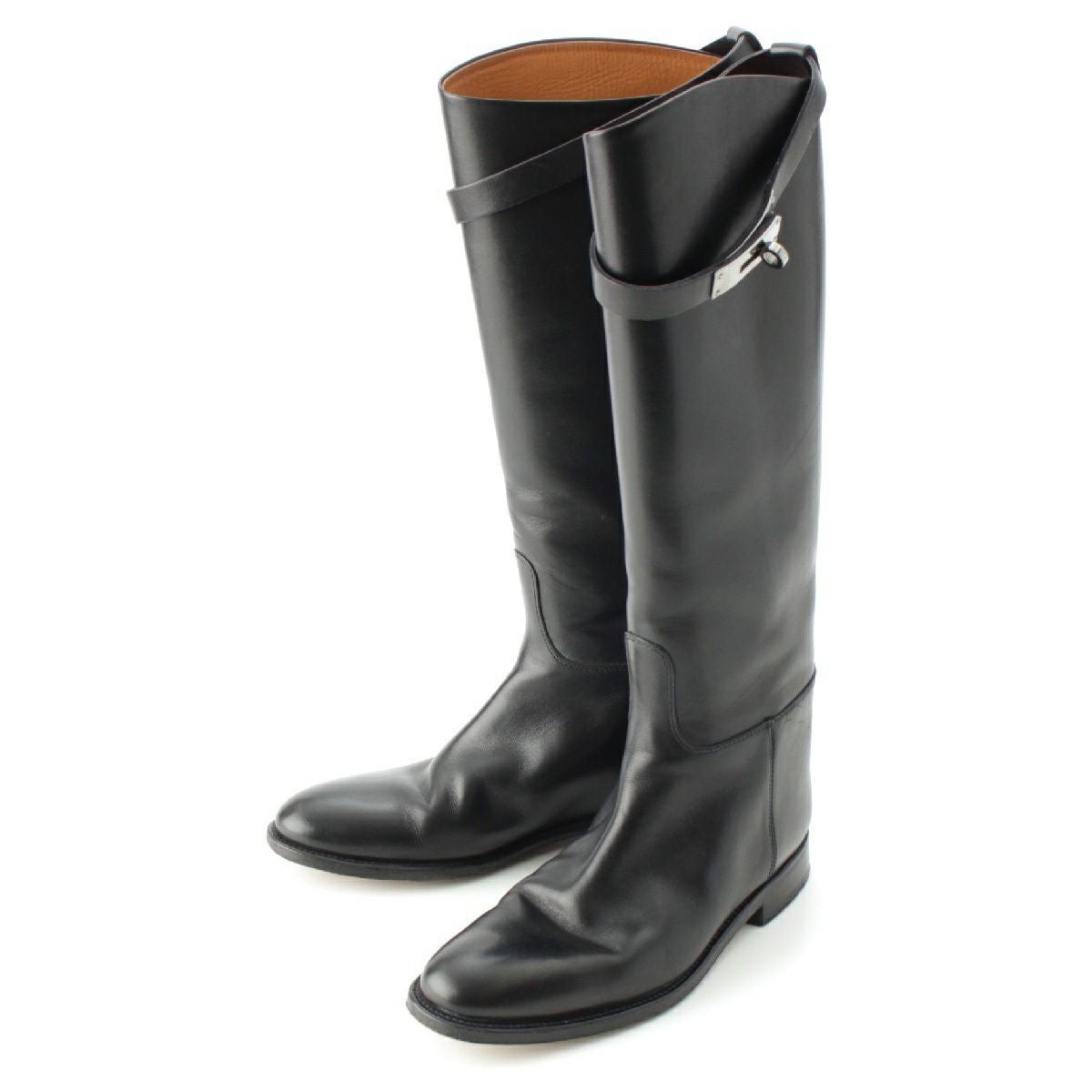 エルメス ケリー ジャンピング レザー ジョッキー ロング ブーツ ブラック シルバー金具 36