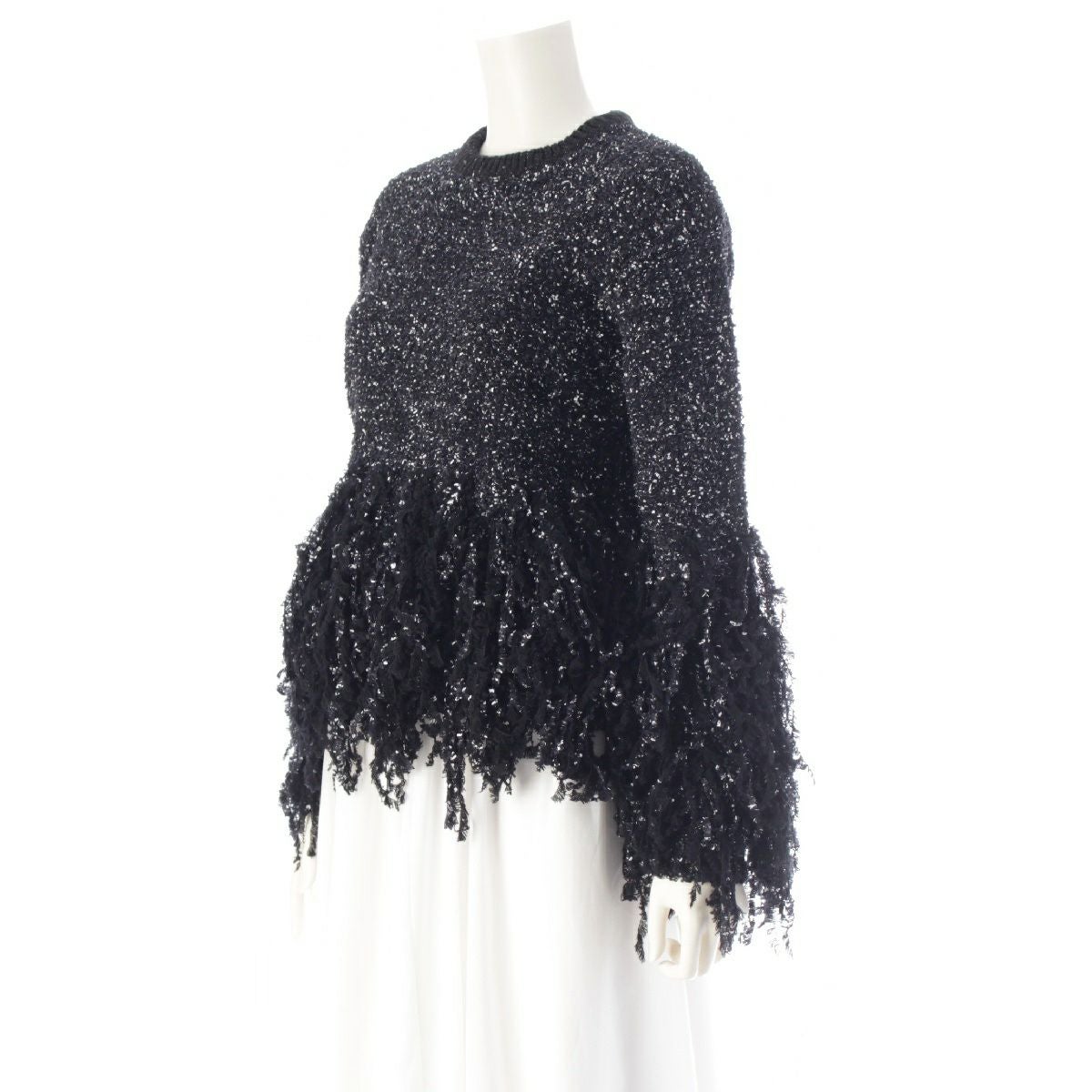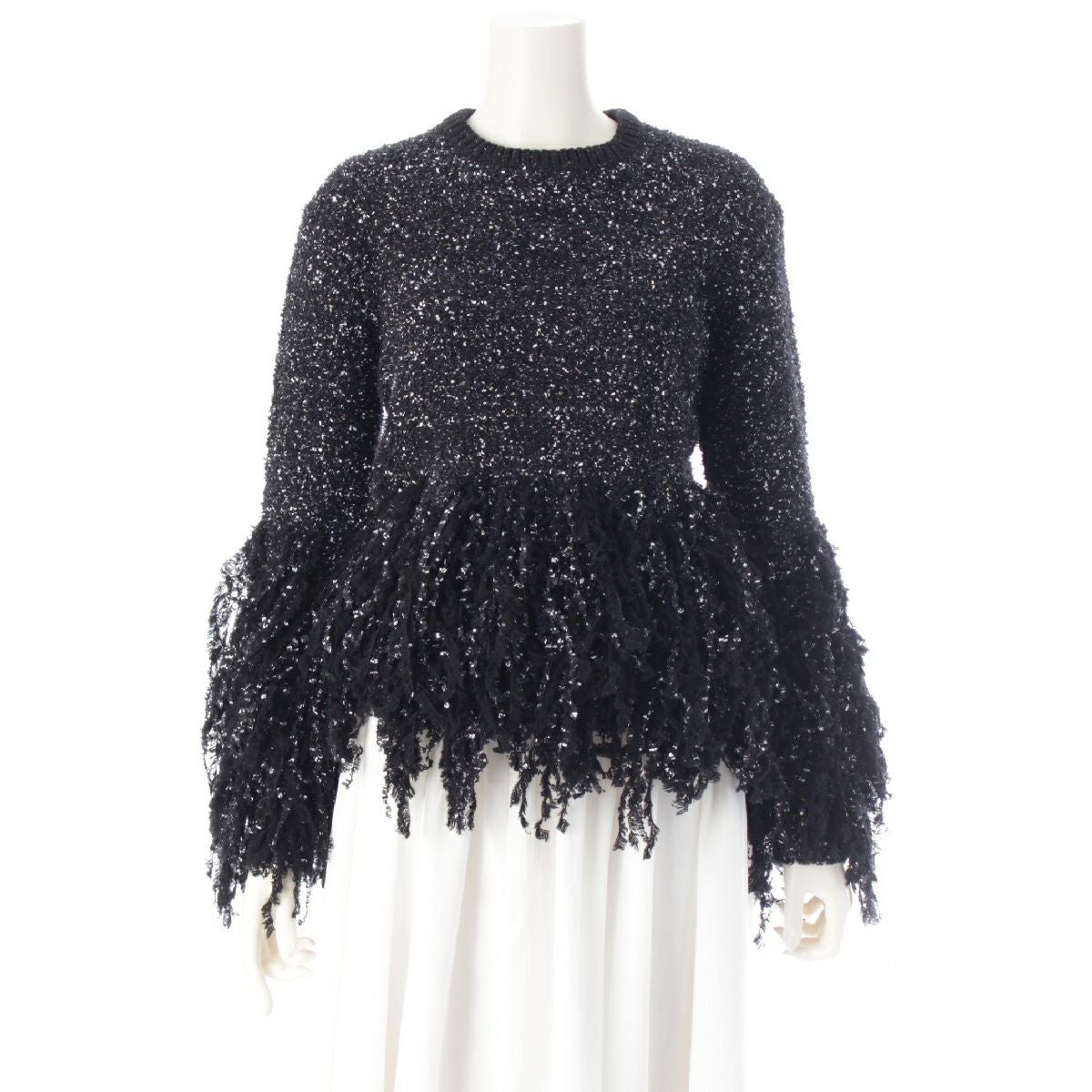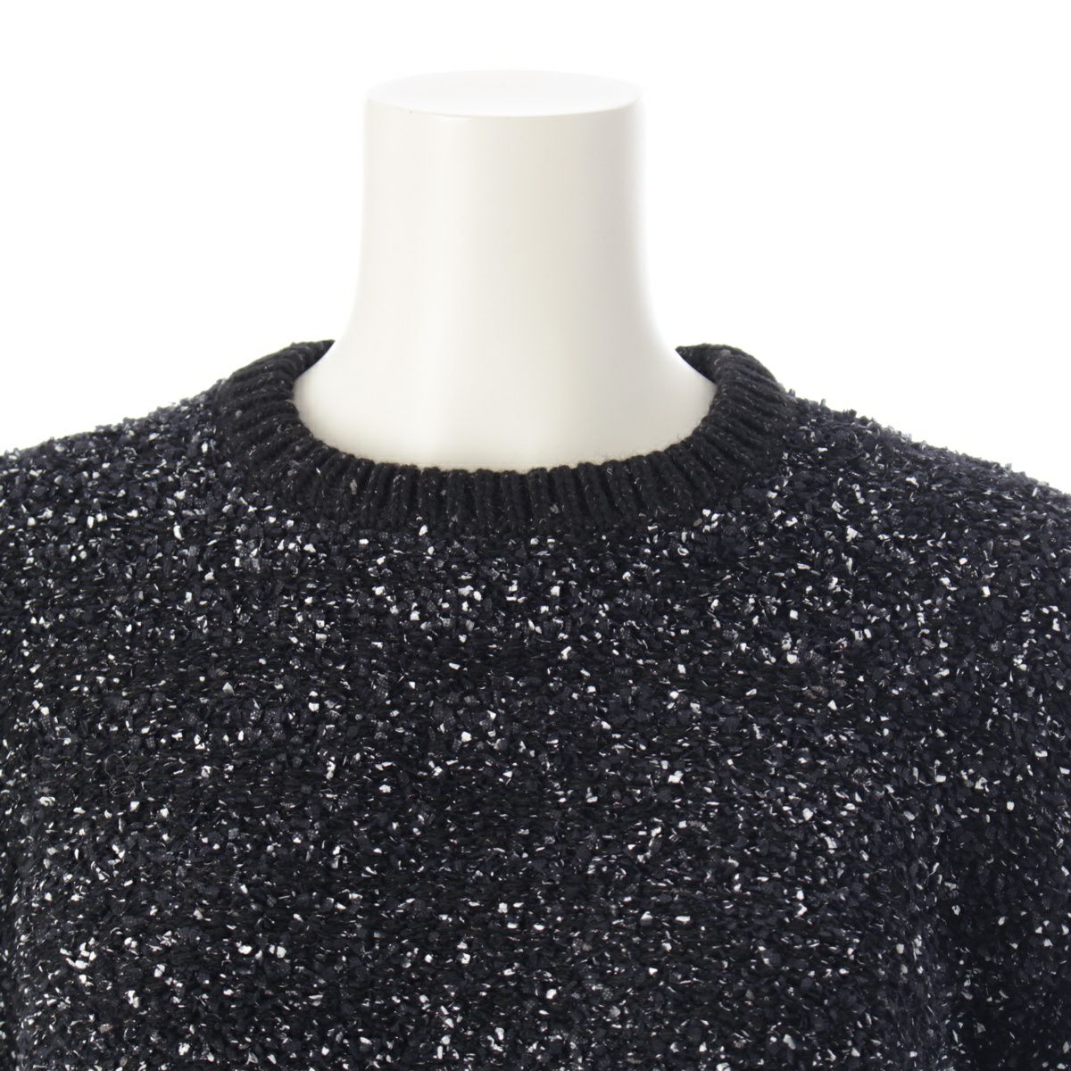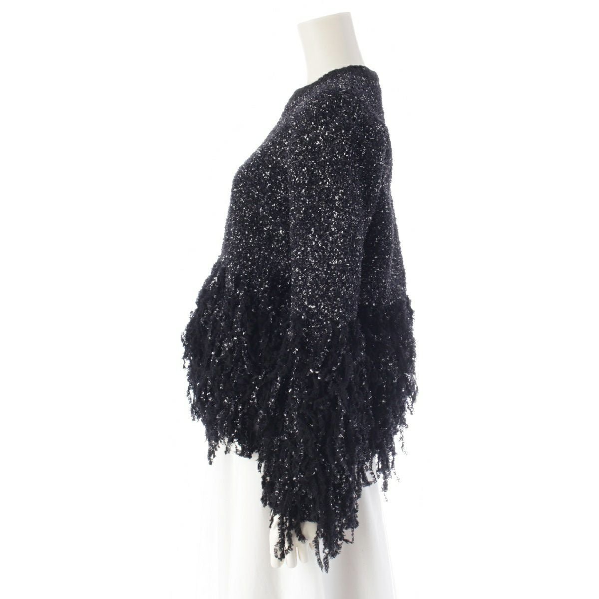 ドゥロワー ナイロン ウール コットン混 1.5G フリンジ ボリューム ローゲージ ニット ブラックメランジ ラメ トップス 6513-106-0941 ブラック×シルバー