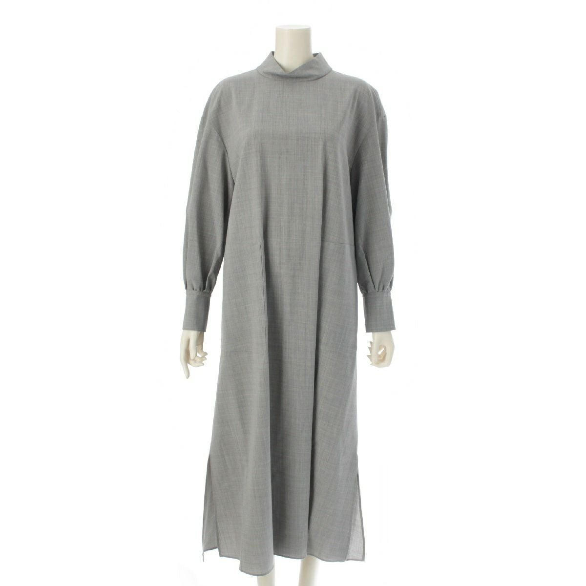 アドーア 23年 ウール ポケット付 長袖 ロング ワンピース ドレス 531‐3240035 グレー 38