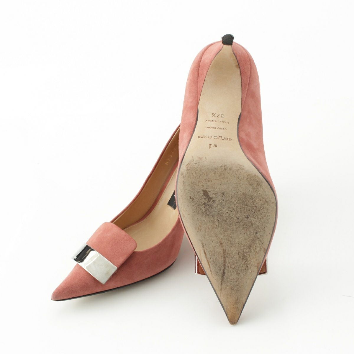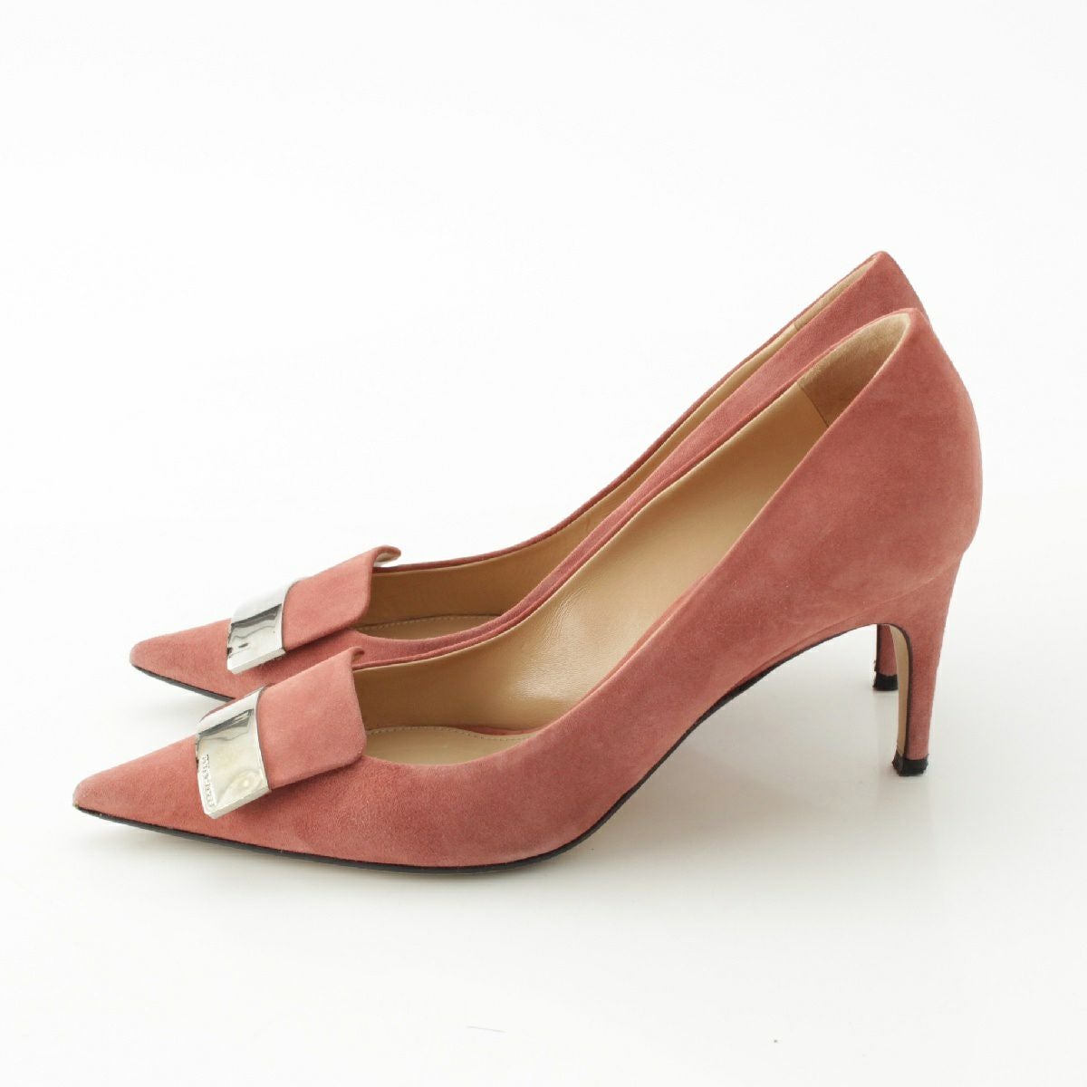 セルジオロッシ SR1 スエード プレート ポインテッドトゥ ヒール パンプス ピンク シルバー金具 37 1/2