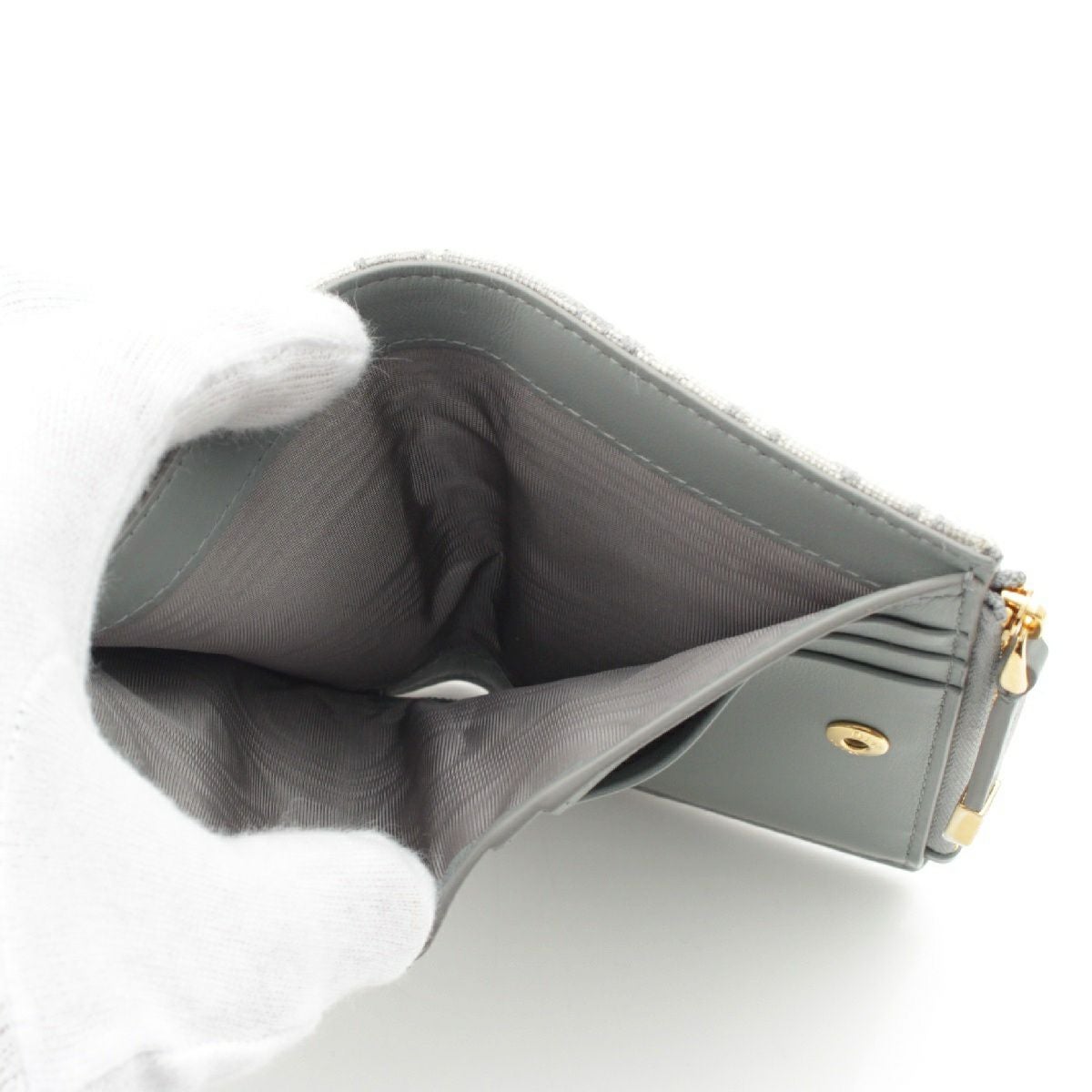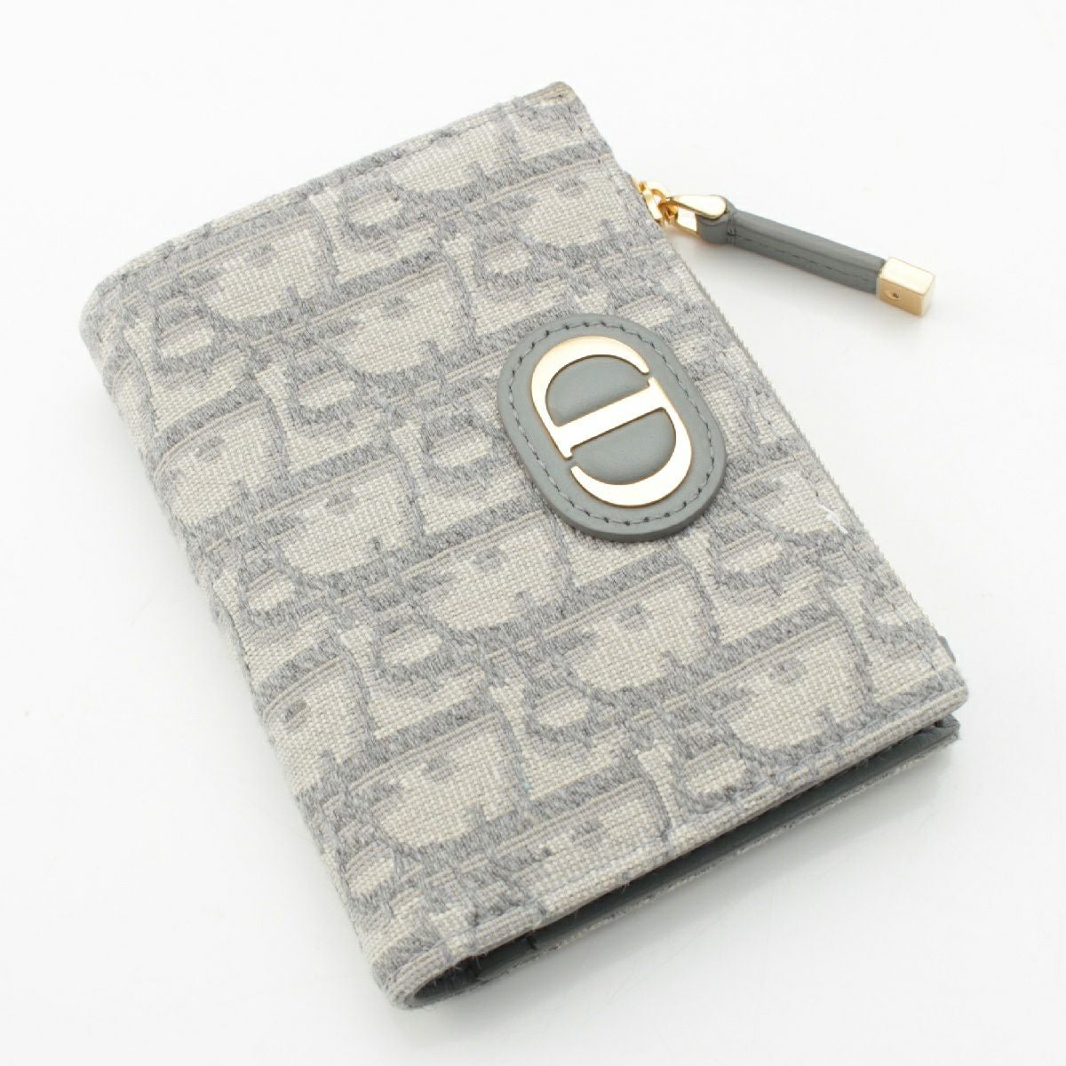 ディオール モンテーニュ 30 ダリア ジャカード レザー オブリーク トロッター CDロゴ 二つ折り財布 コンパクトウォレット ブルーグレー