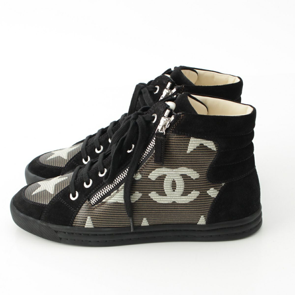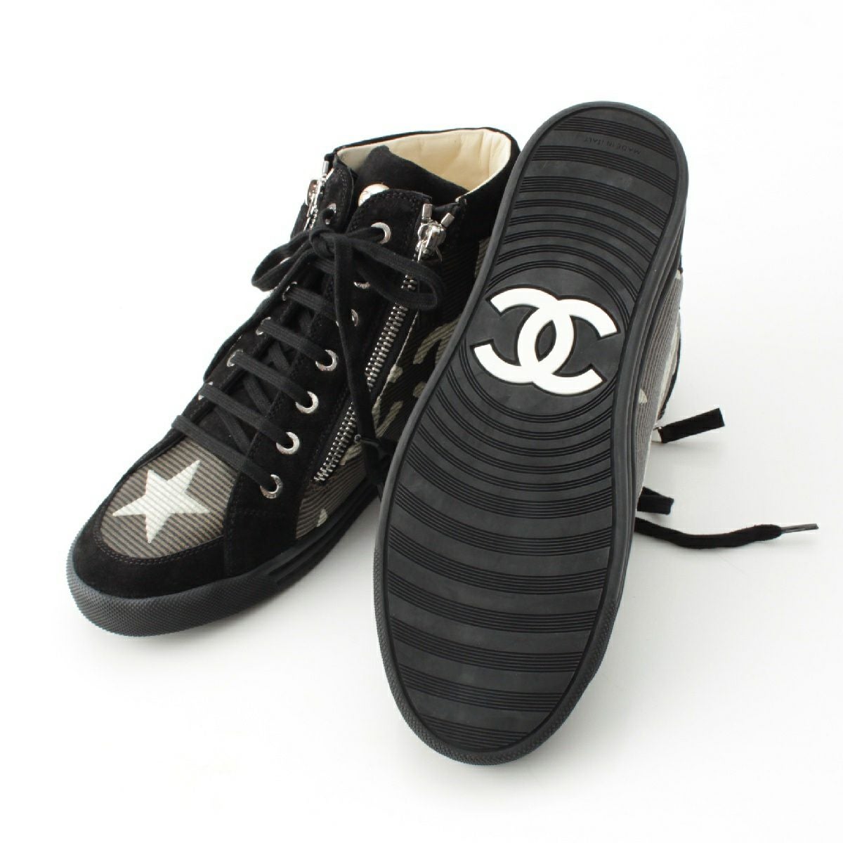 シャネル 14A スエード ココマーク パール スター ファスナー ハイカット スニーカー IG30243 ブラック 38