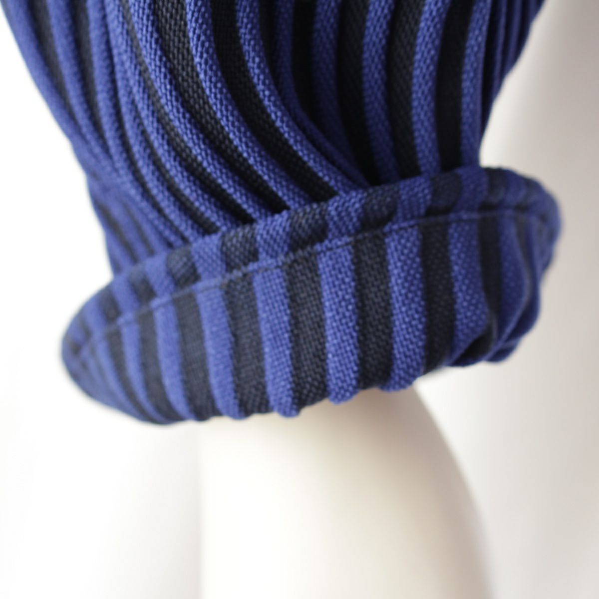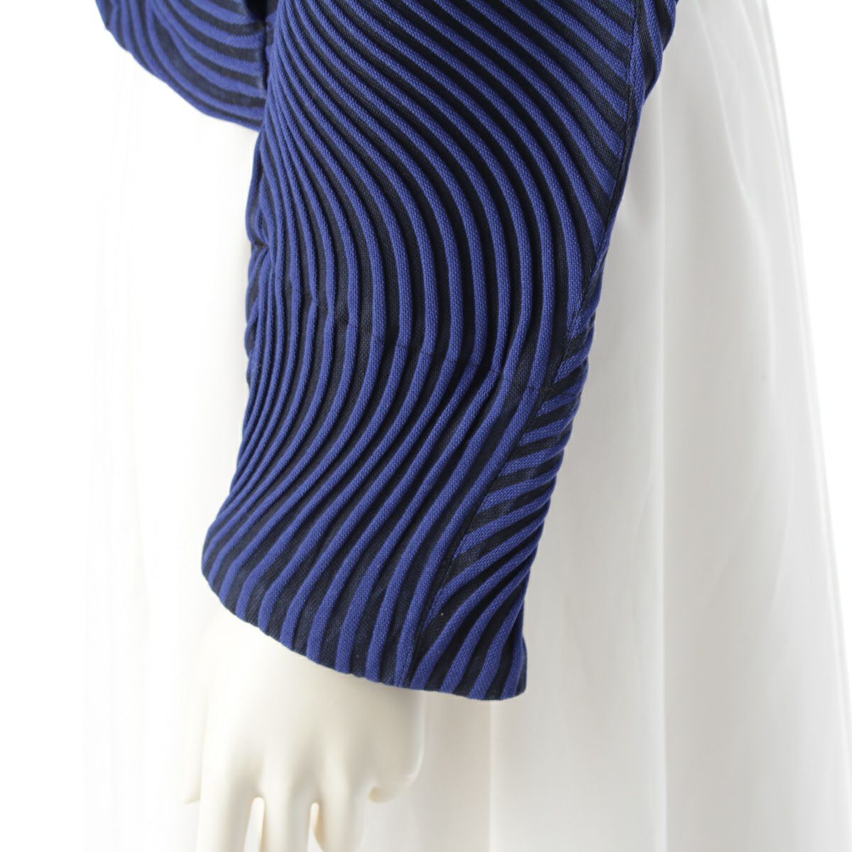 イッセイミヤケ 16年 3Dスチームプリーツ 1B スタンドネック ボーダー ジャケット トップス IM62FD540 ブルー ブラック 2