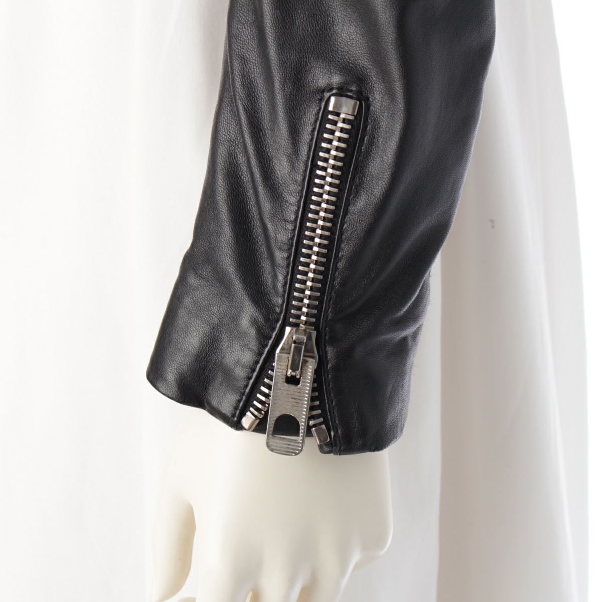 バレンシアガ 13年 レザー レースアップ キルティング ダブル ライダースジャケット アウター ブラック 34