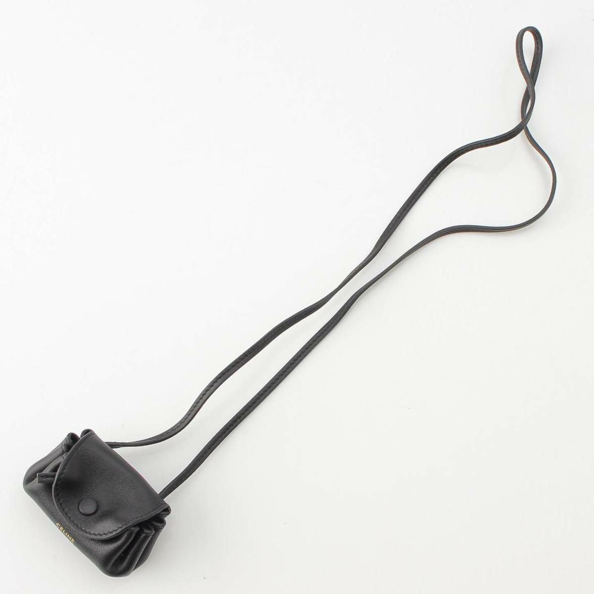 セリーヌ ロゴ レザー ネックストラップ付き コインケース 小銭入れ ブラック