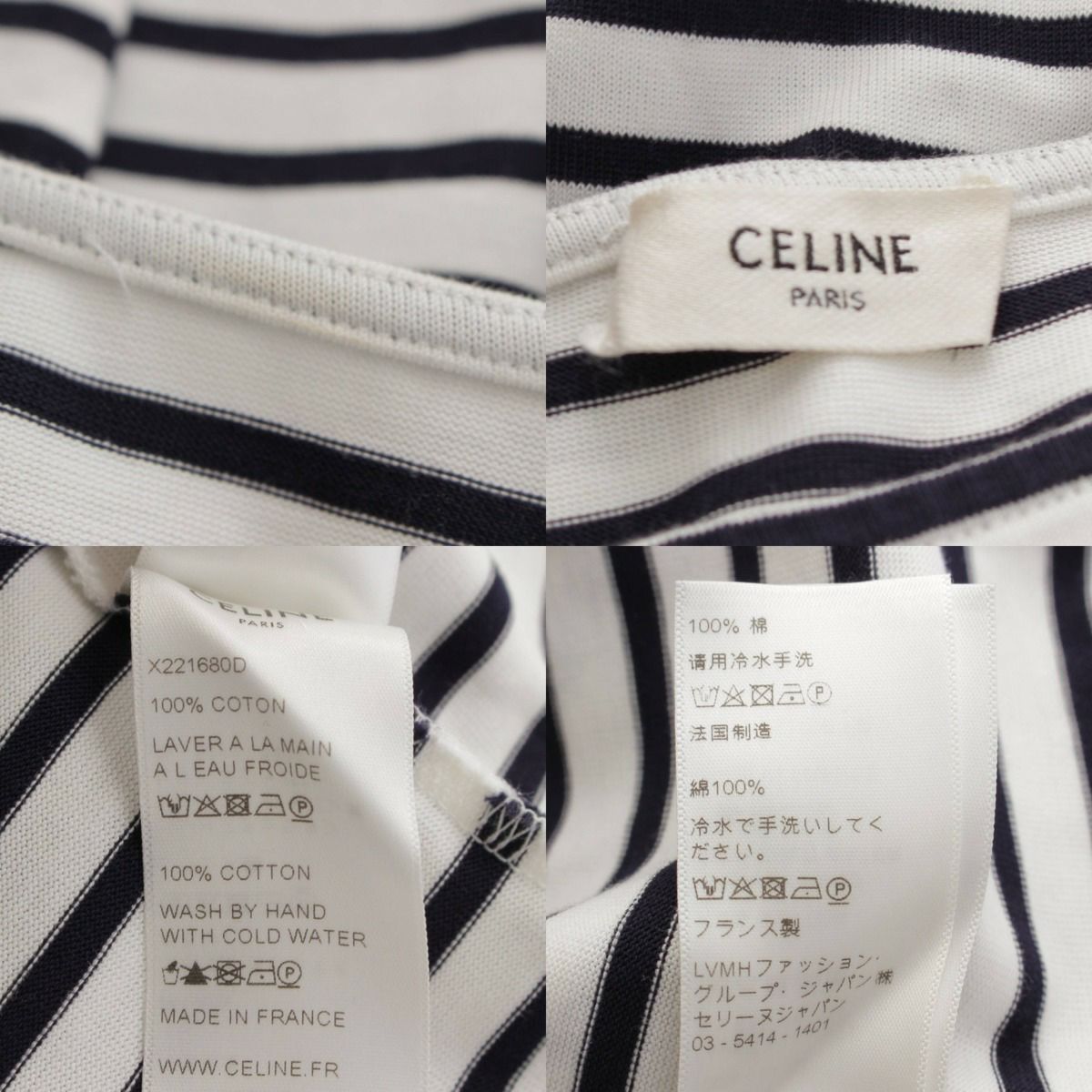 セリーヌ コットン ボートネック 長袖 ボーダー トップス カットソー X221680D ホワイト S