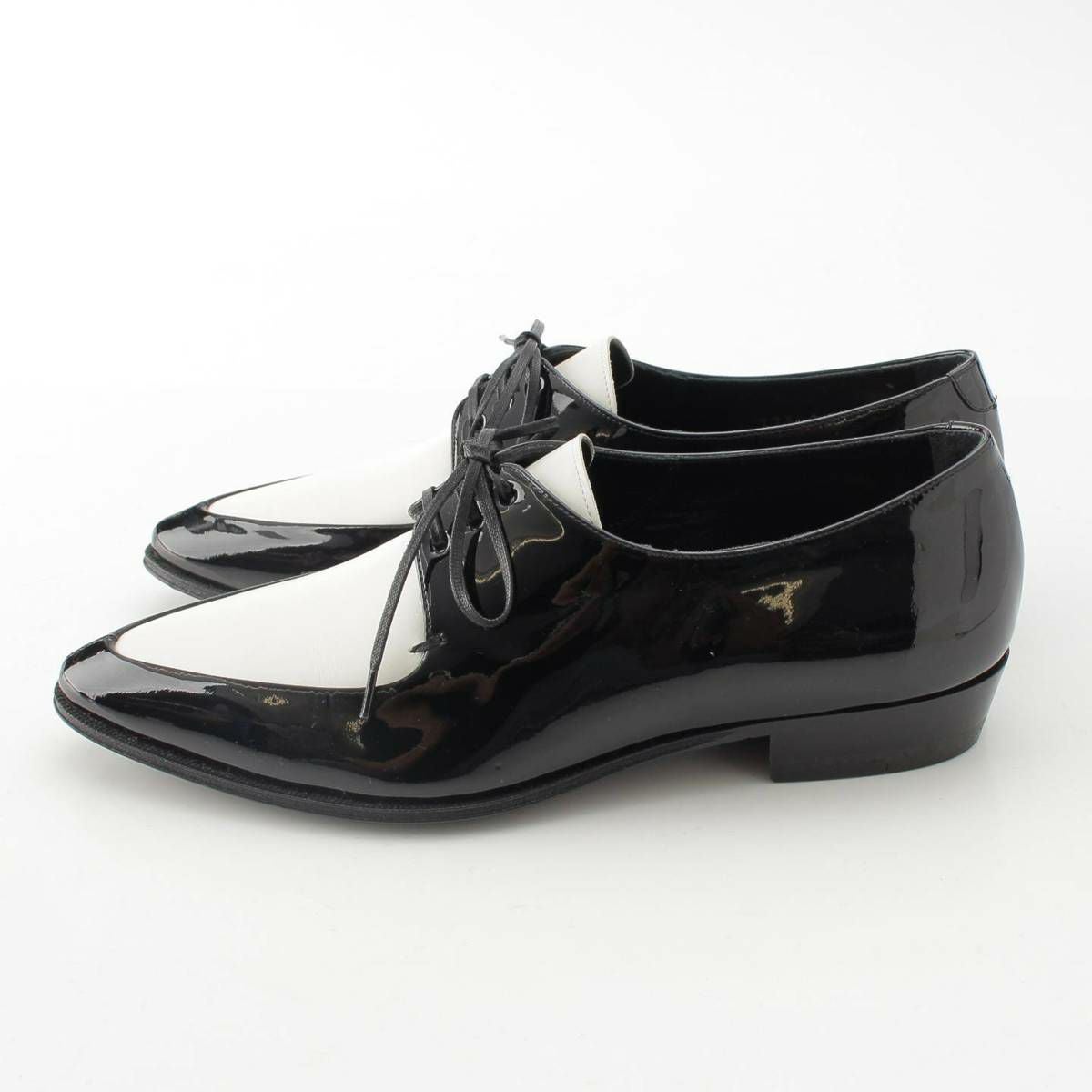 セリーヌ パテント クリーパー レースアップ ドレス シューズ ブラック ホワイト 36 1/2