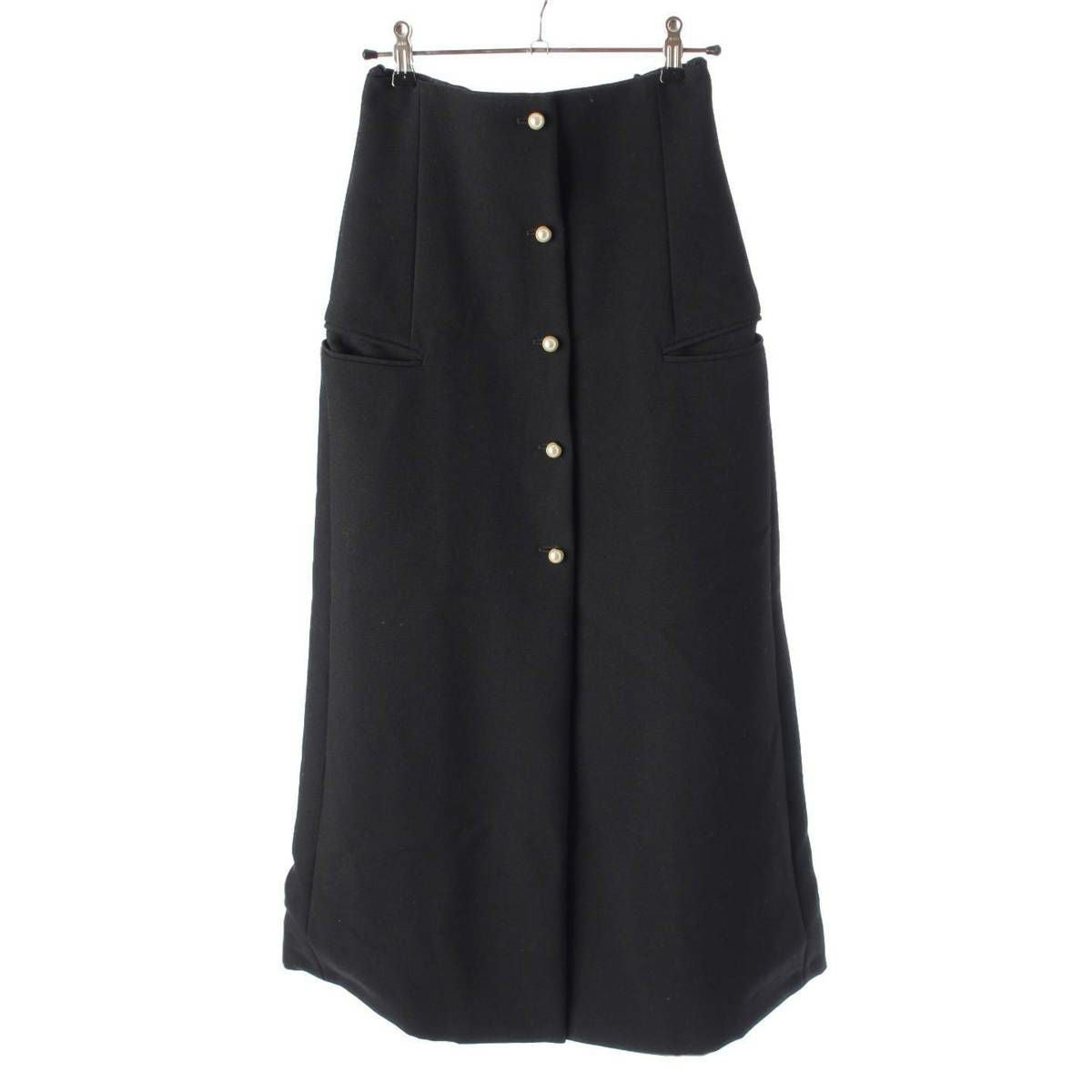 セリーヌ フィービー期 パールボタンデザイン ウール スリット スカート ブラック 34
