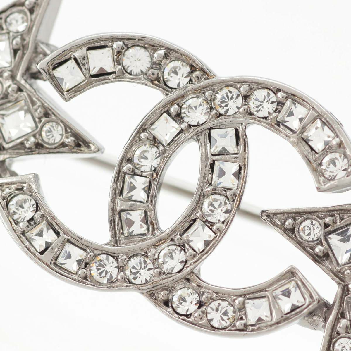 シャネル C21B ココマーク スター ラインストーン ブローチ シルバー