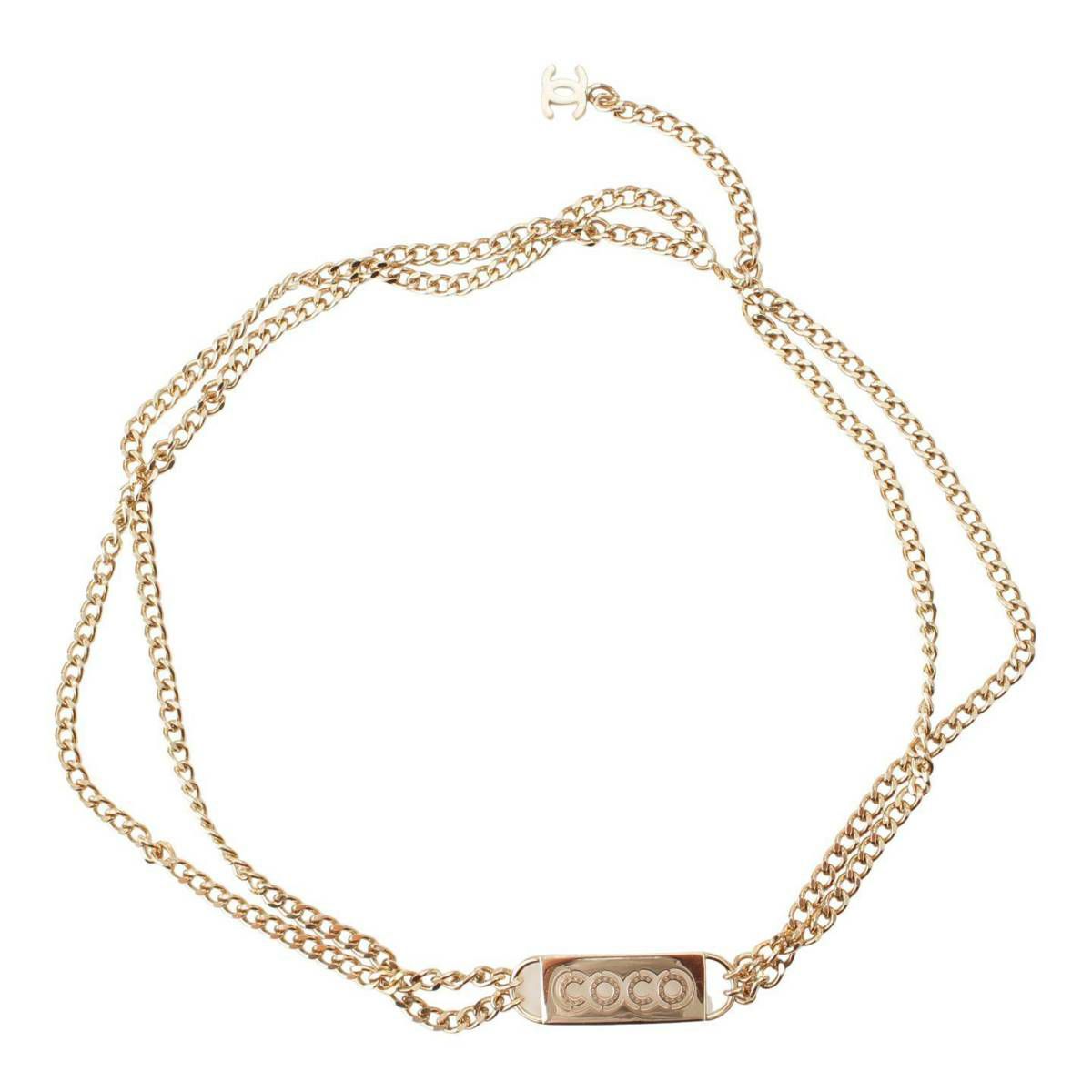 シャネル 02P COCO ココ ロゴプレート パンチング チェーンベルト ゴールド