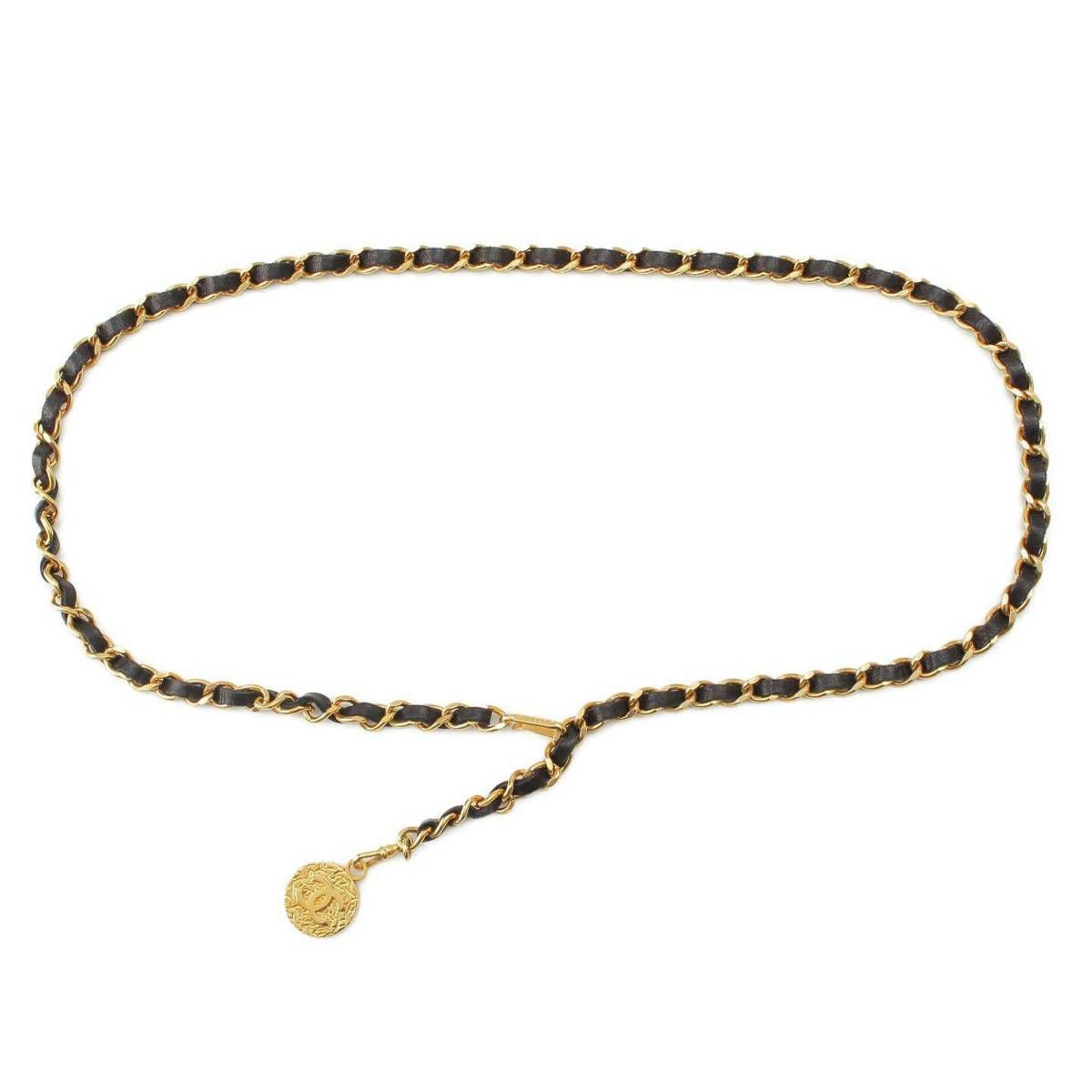 シャネル 1982 ココマーク レザー チェーンベルト ブラック ゴールド
