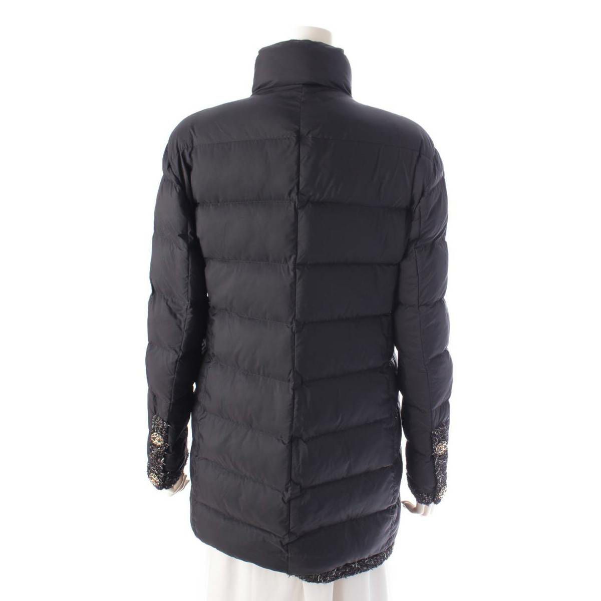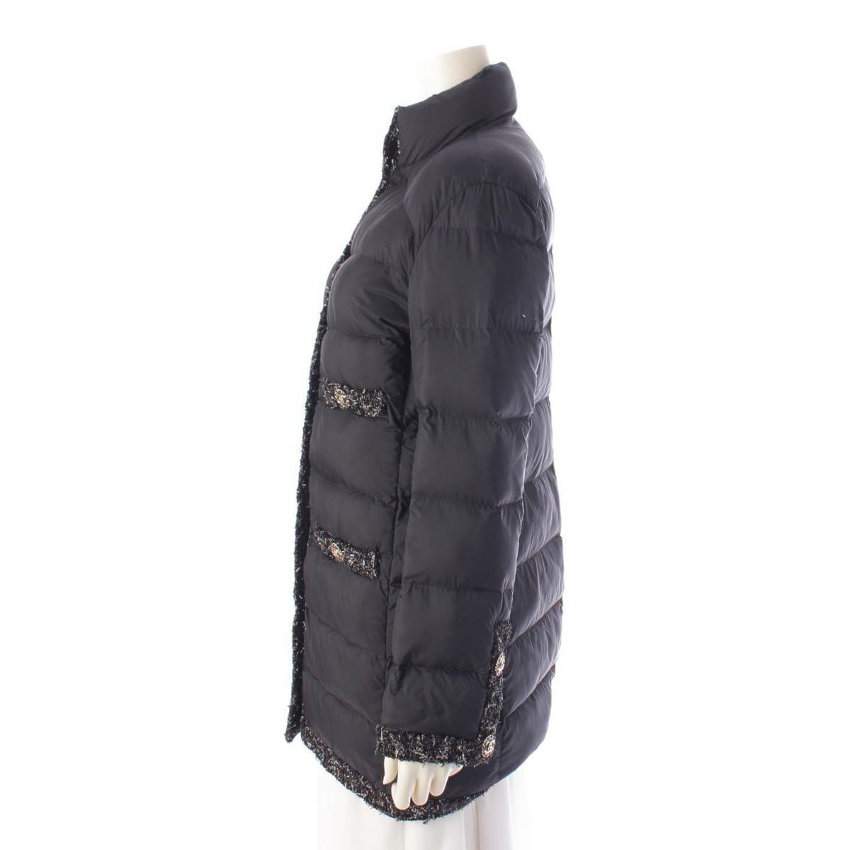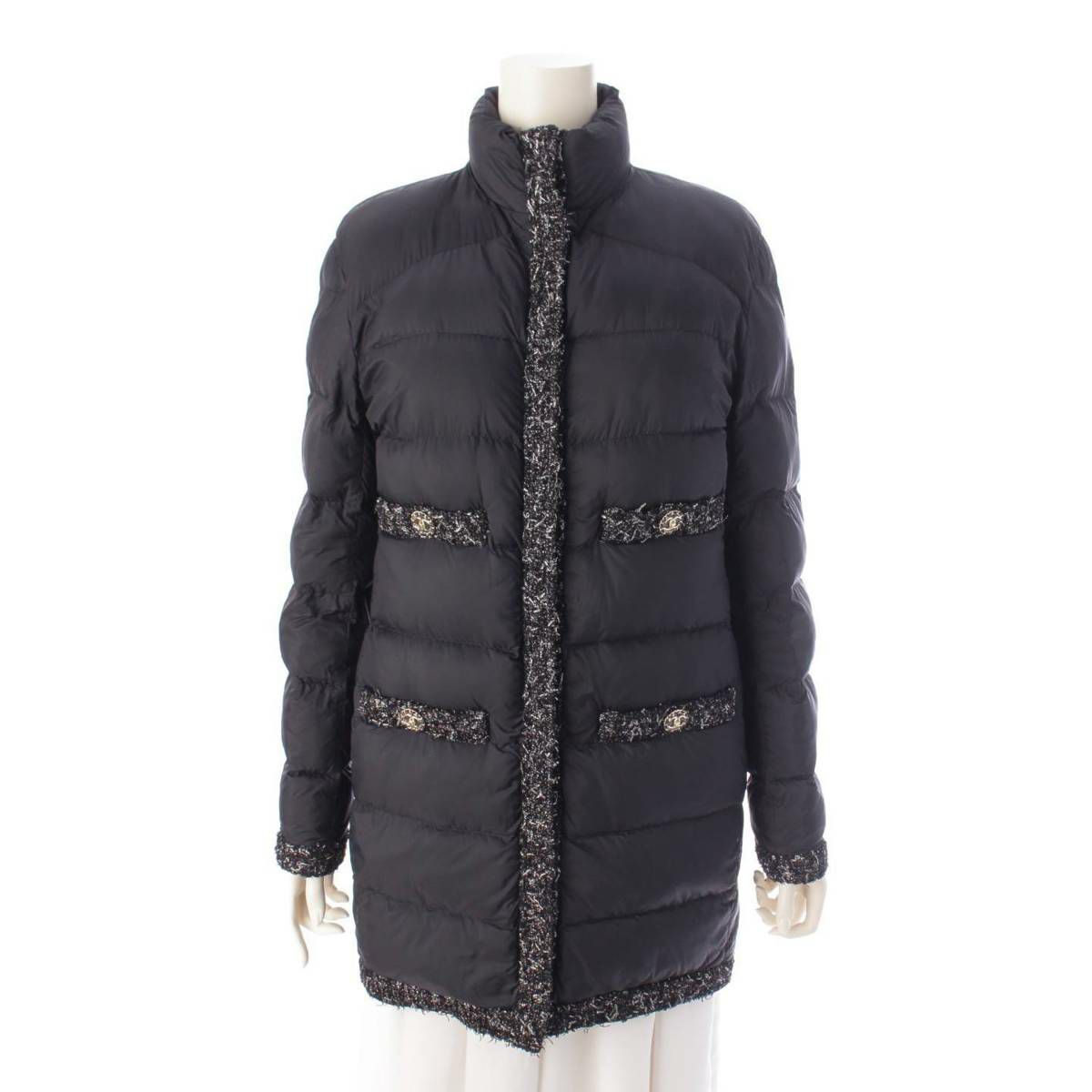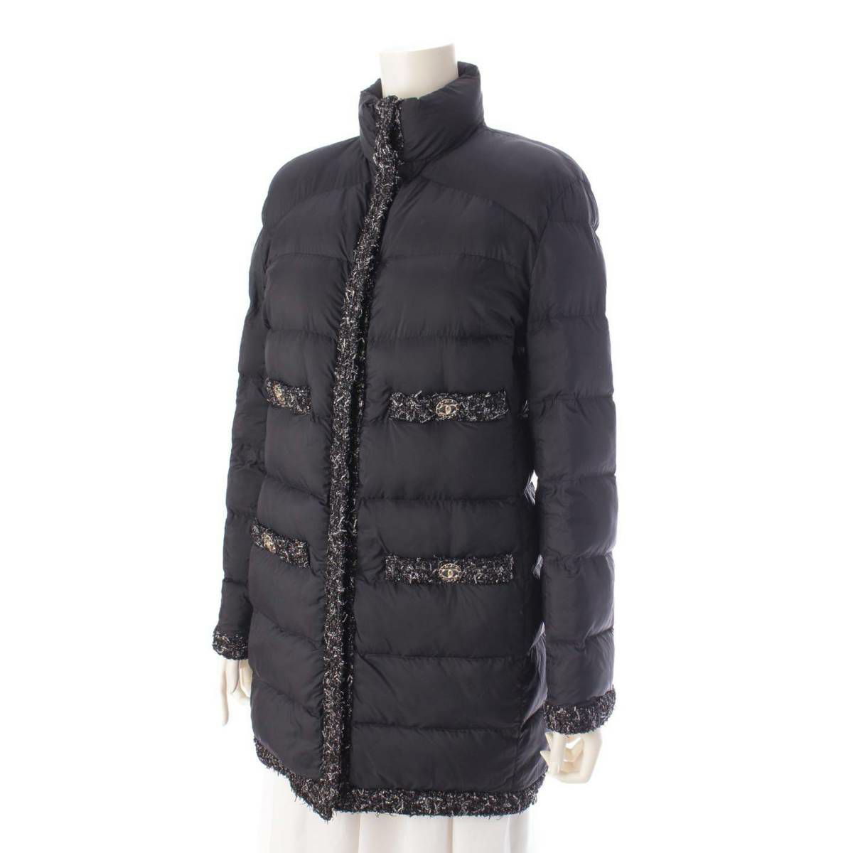 シャネル 18AW ココボタン ツイード 4ポケット ダウンコート P60015 ブラック 38