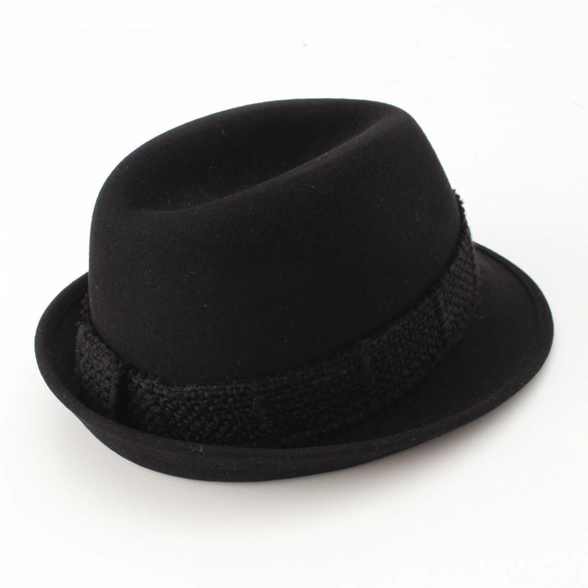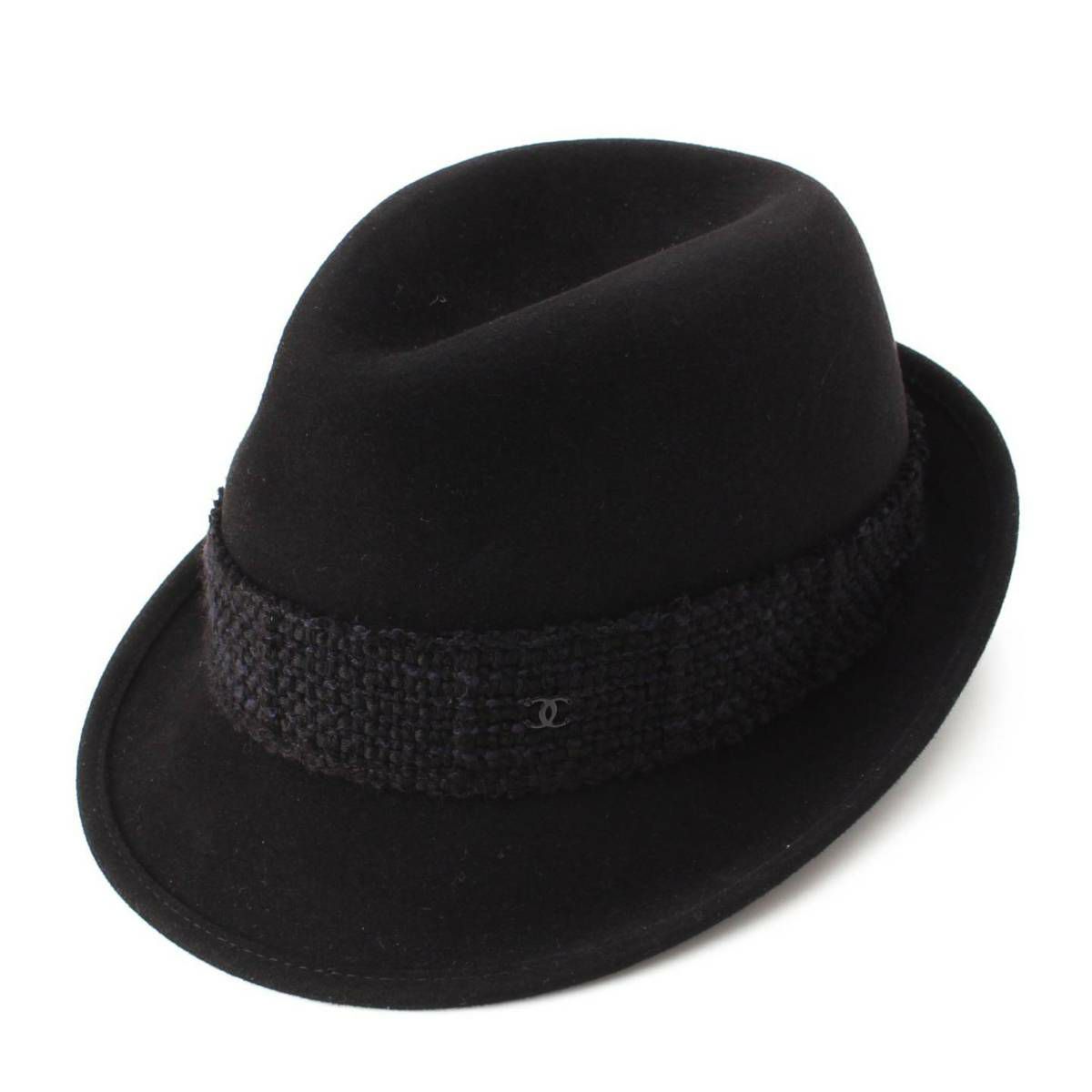 シャネル ココマーク ツイード ラパン フェルトハット 帽子 ブラック M