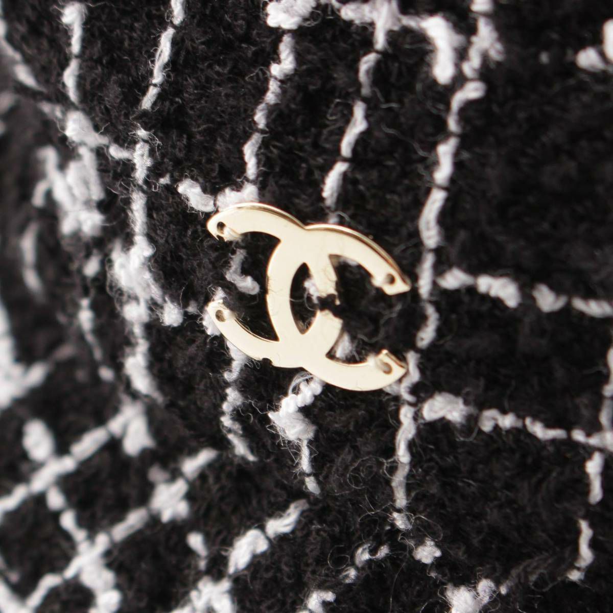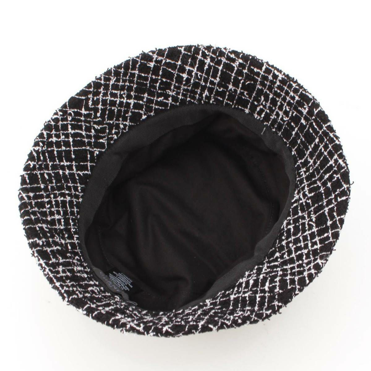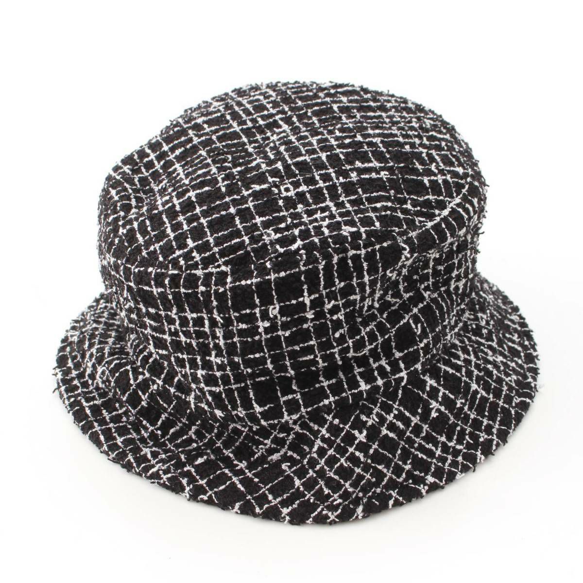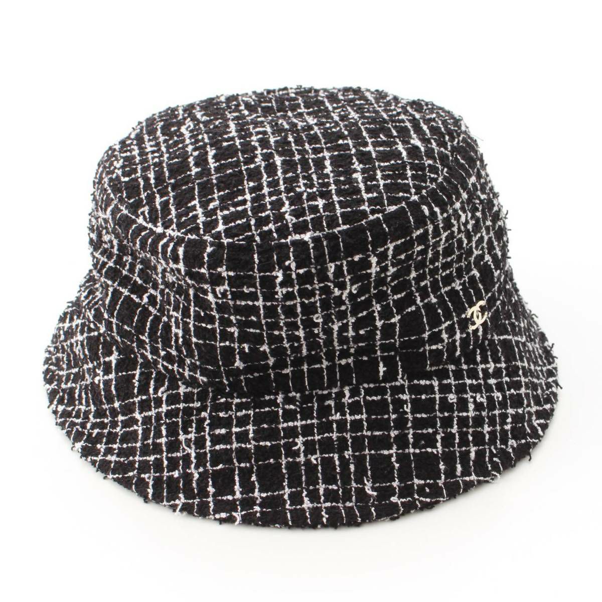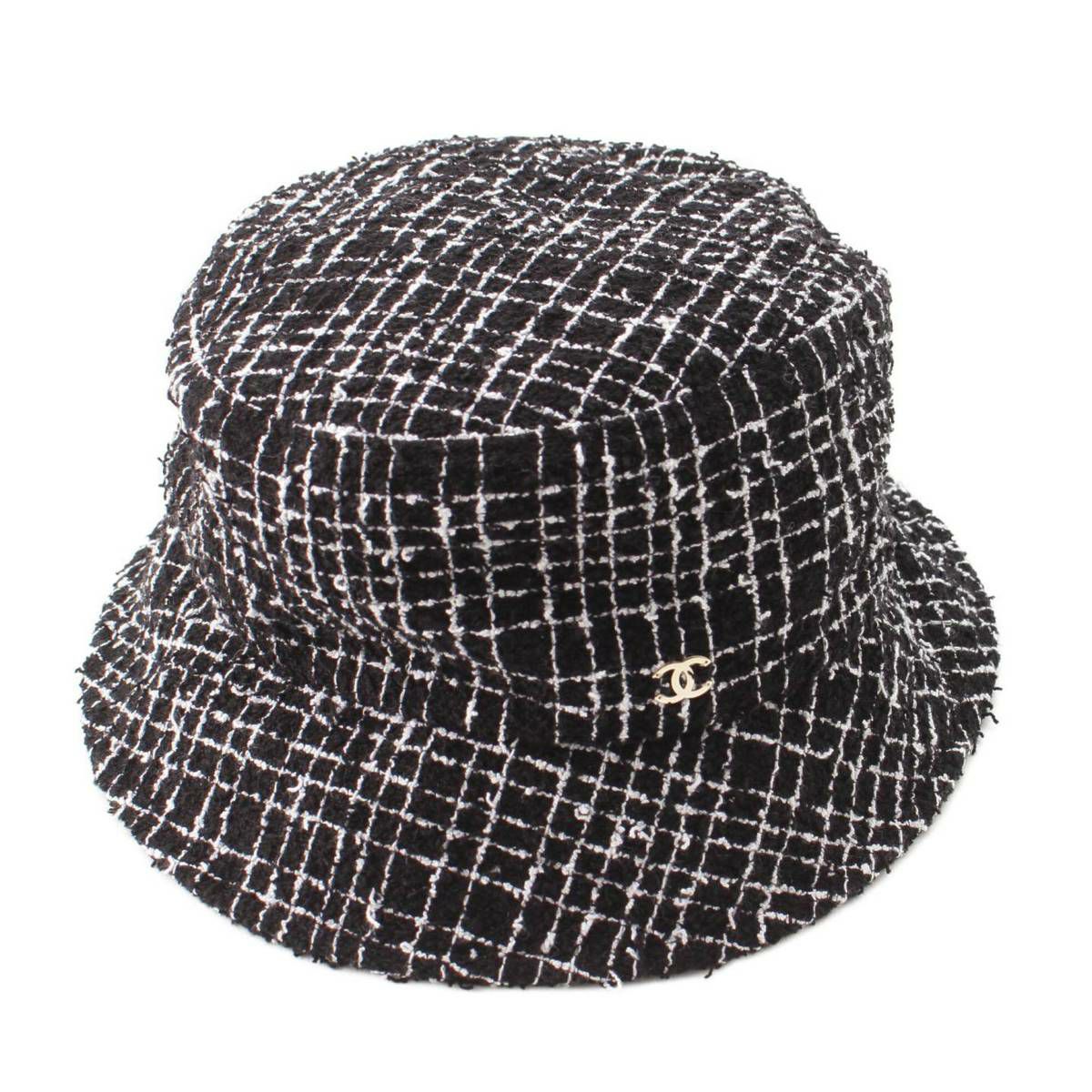 シャネル ココマーク コットン ツイード バスケットハット 帽子 ブラック×ホワイト M