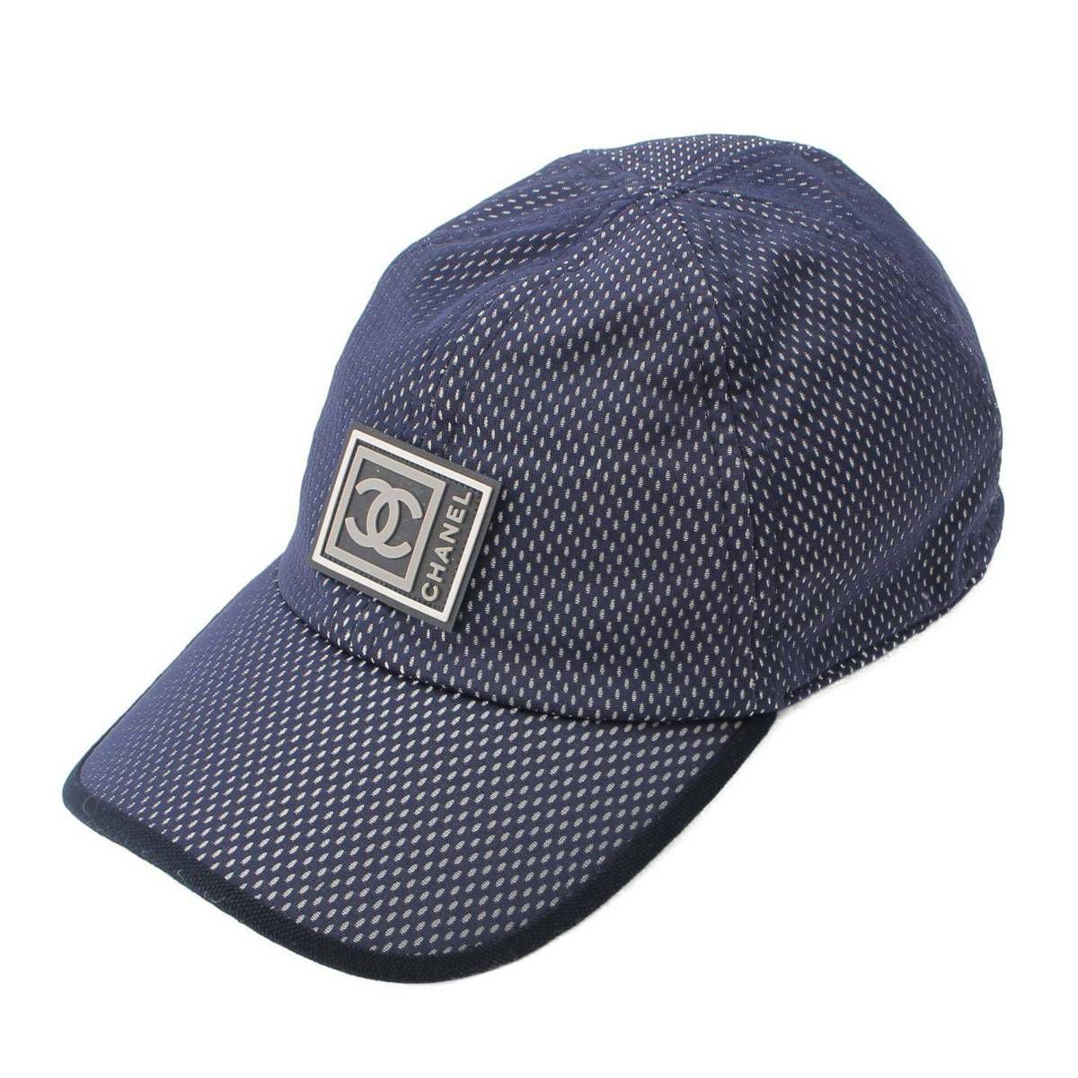シャネル スポーツ ココマーク ロゴ メッシュ ナイロン ベースボールキャップ 帽子 ブルー