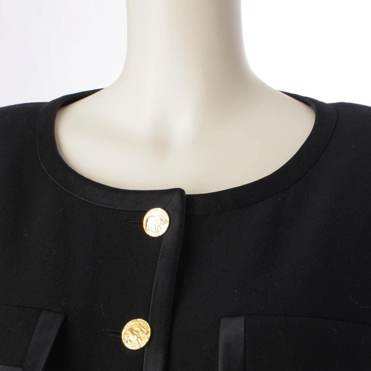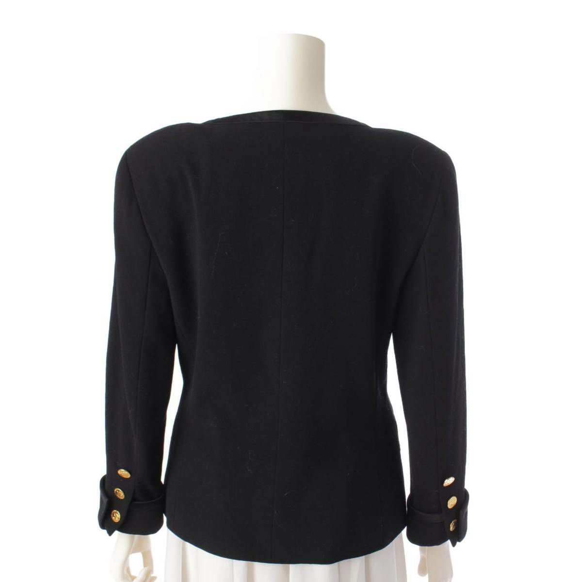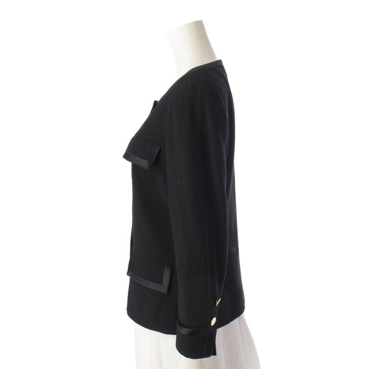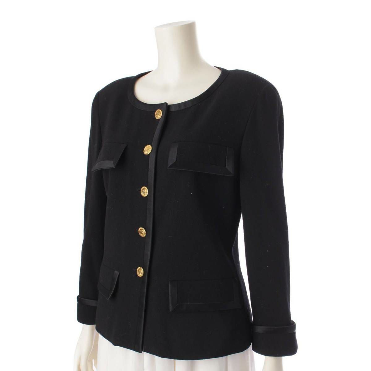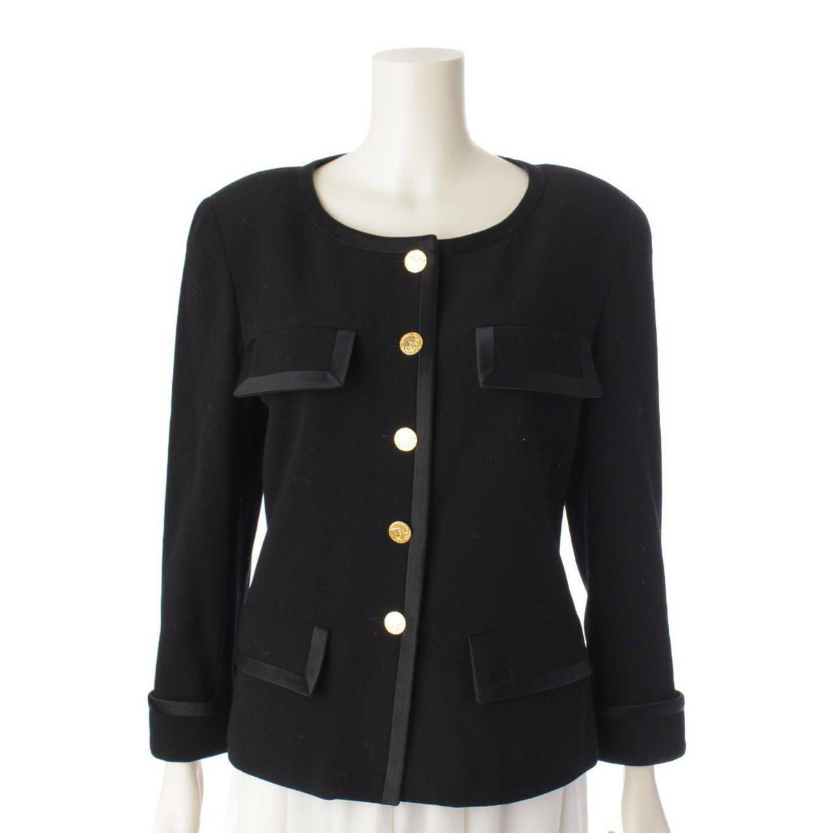シャネル 象コインボタン ウール ノーカラー ジャケット 20639 ブラック 36