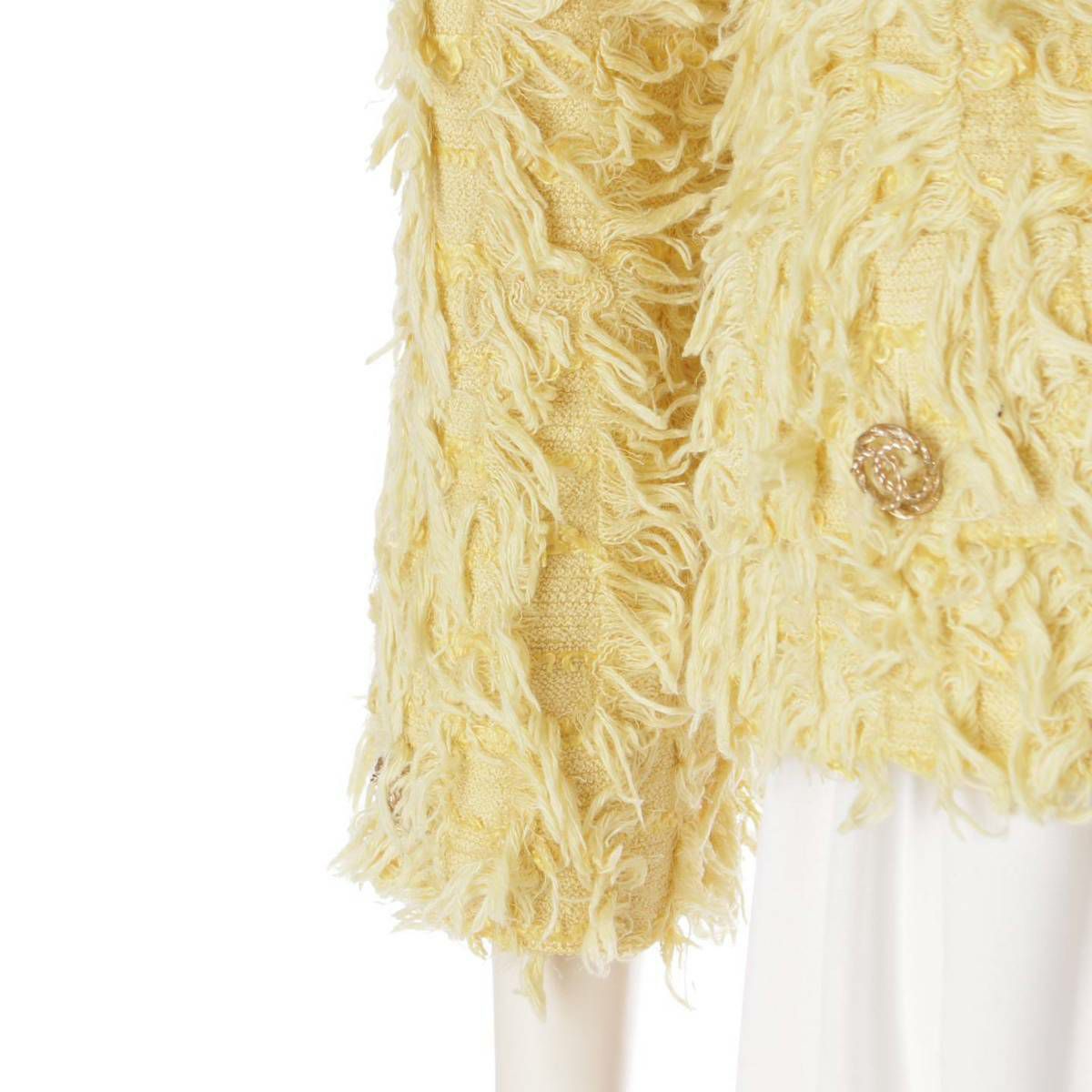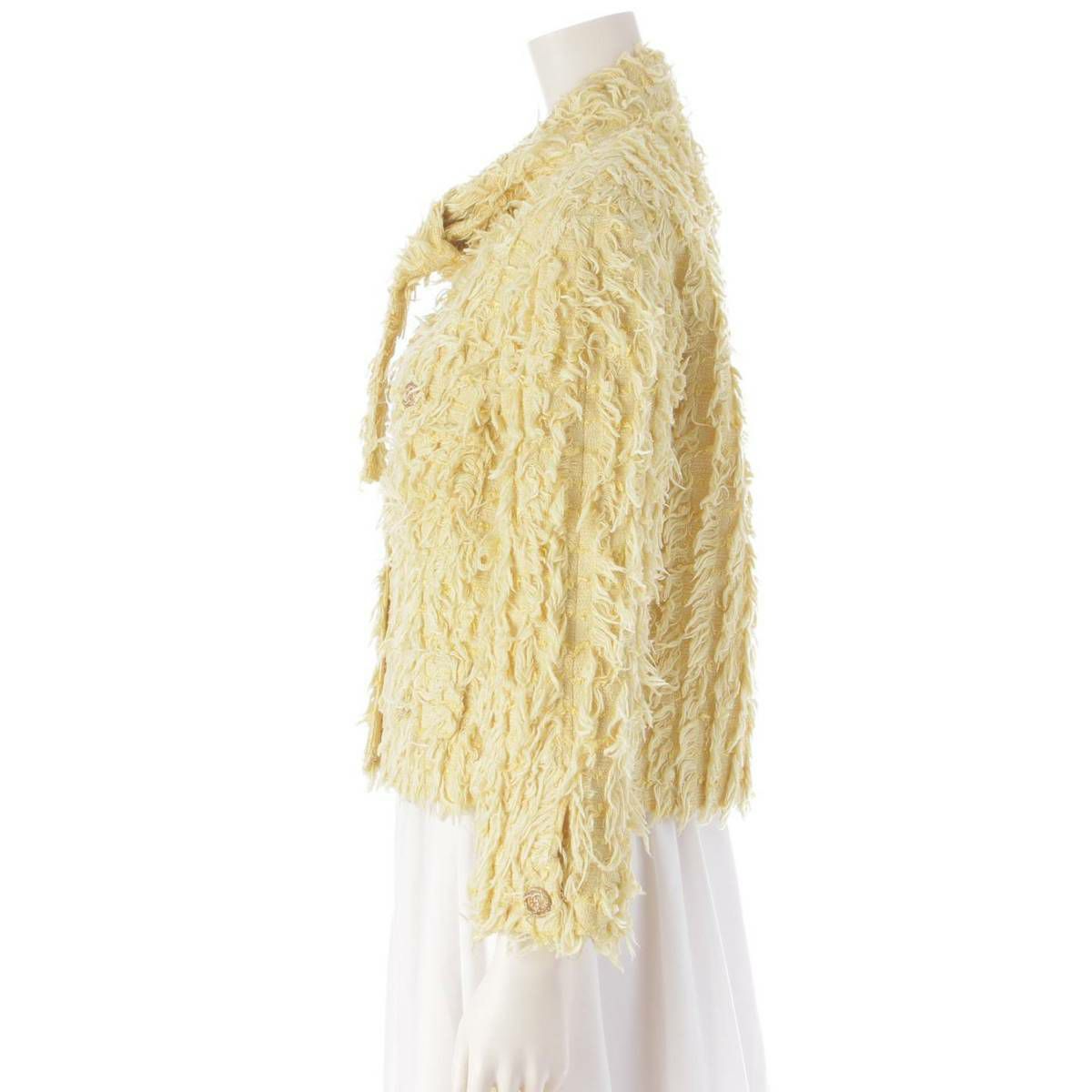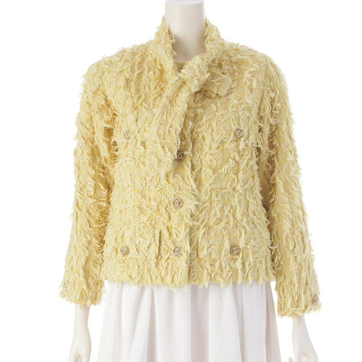 シャネル 21C ココマークボタン 4ポケット ボウタイ ツイード ジャケット P70022 イエロー 34