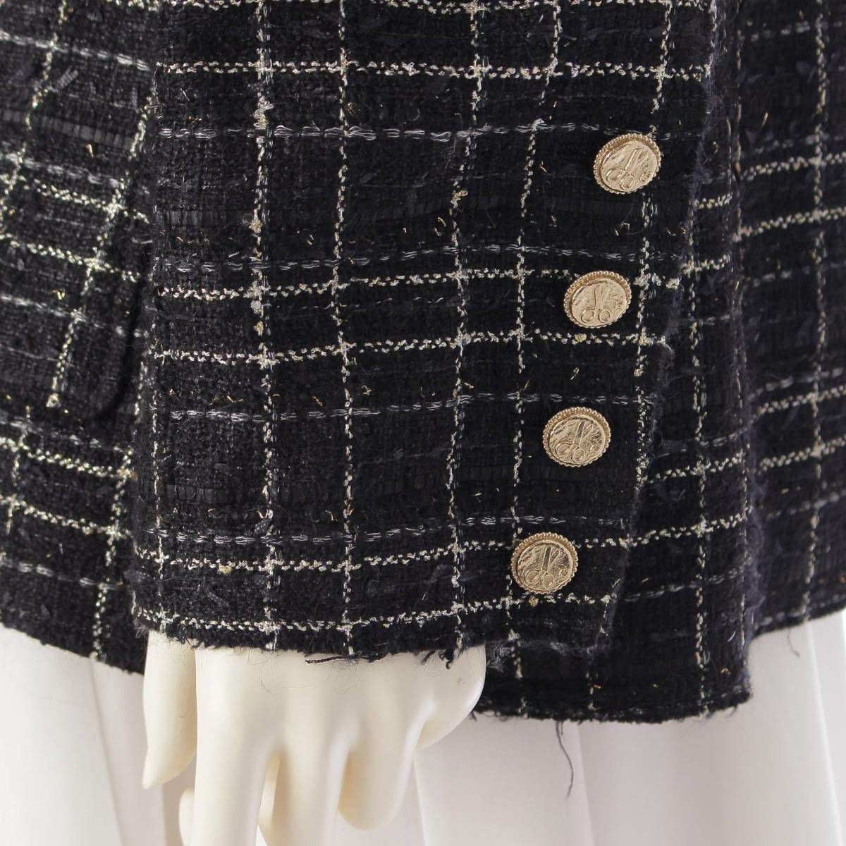 シャネル 08C ツイード ラメ ハサミモチーフボタン チェック ジャケット P32182 ブラック 48