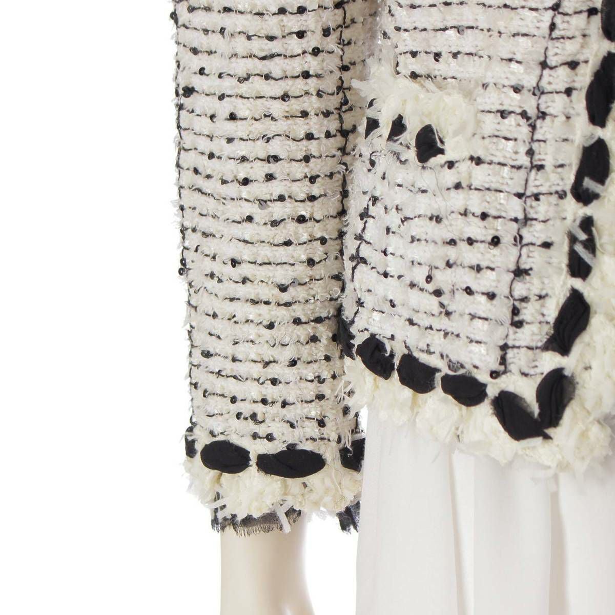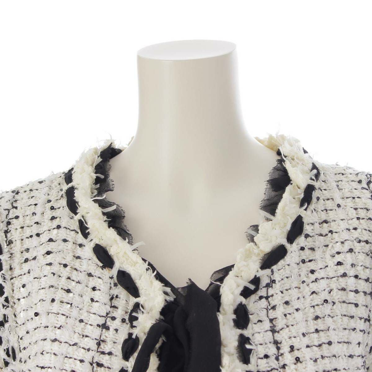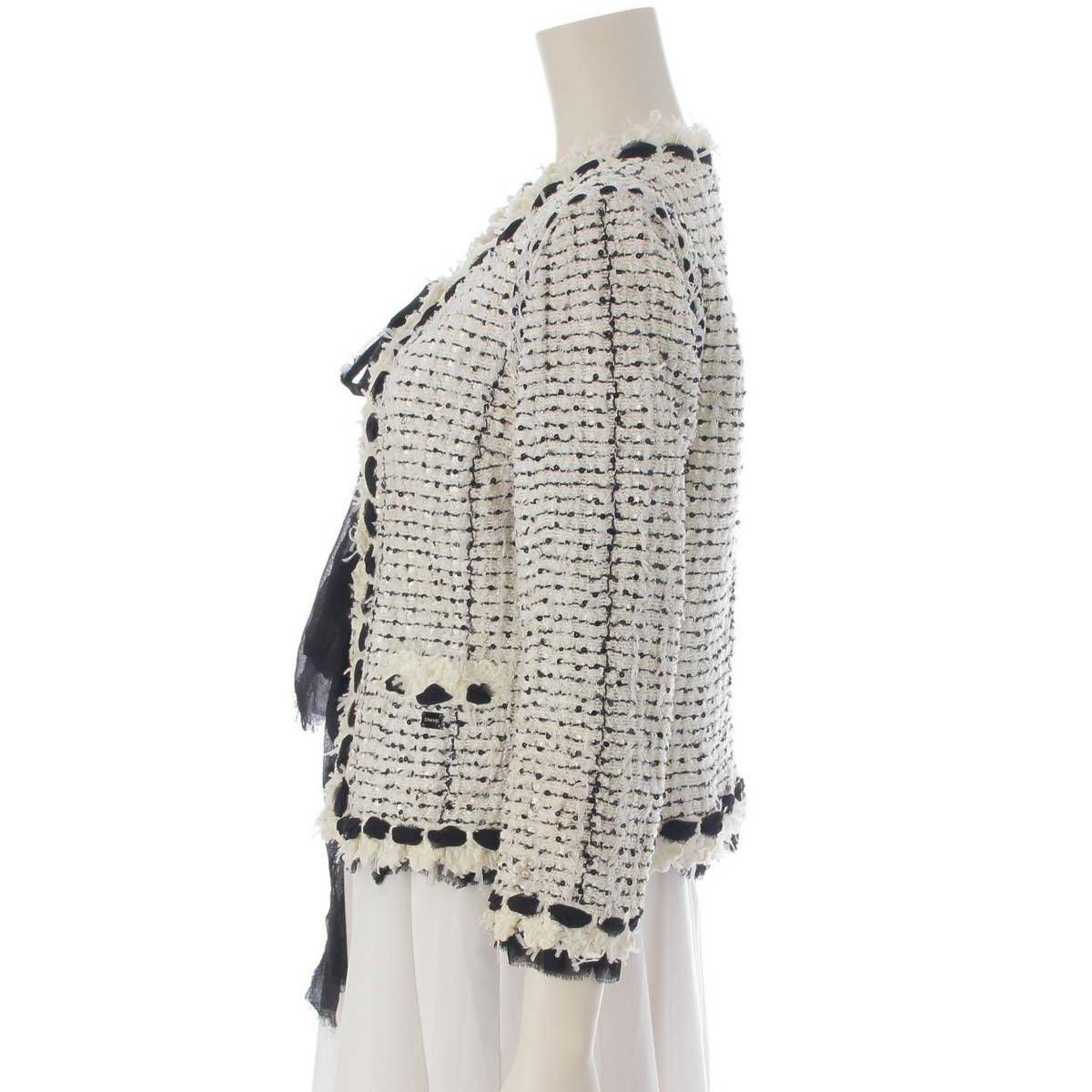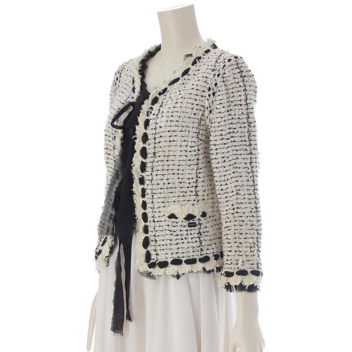 シャネル 05P シルク混 ツイード リボン ノーカラージャケット P25414W03520 ホワイト 40