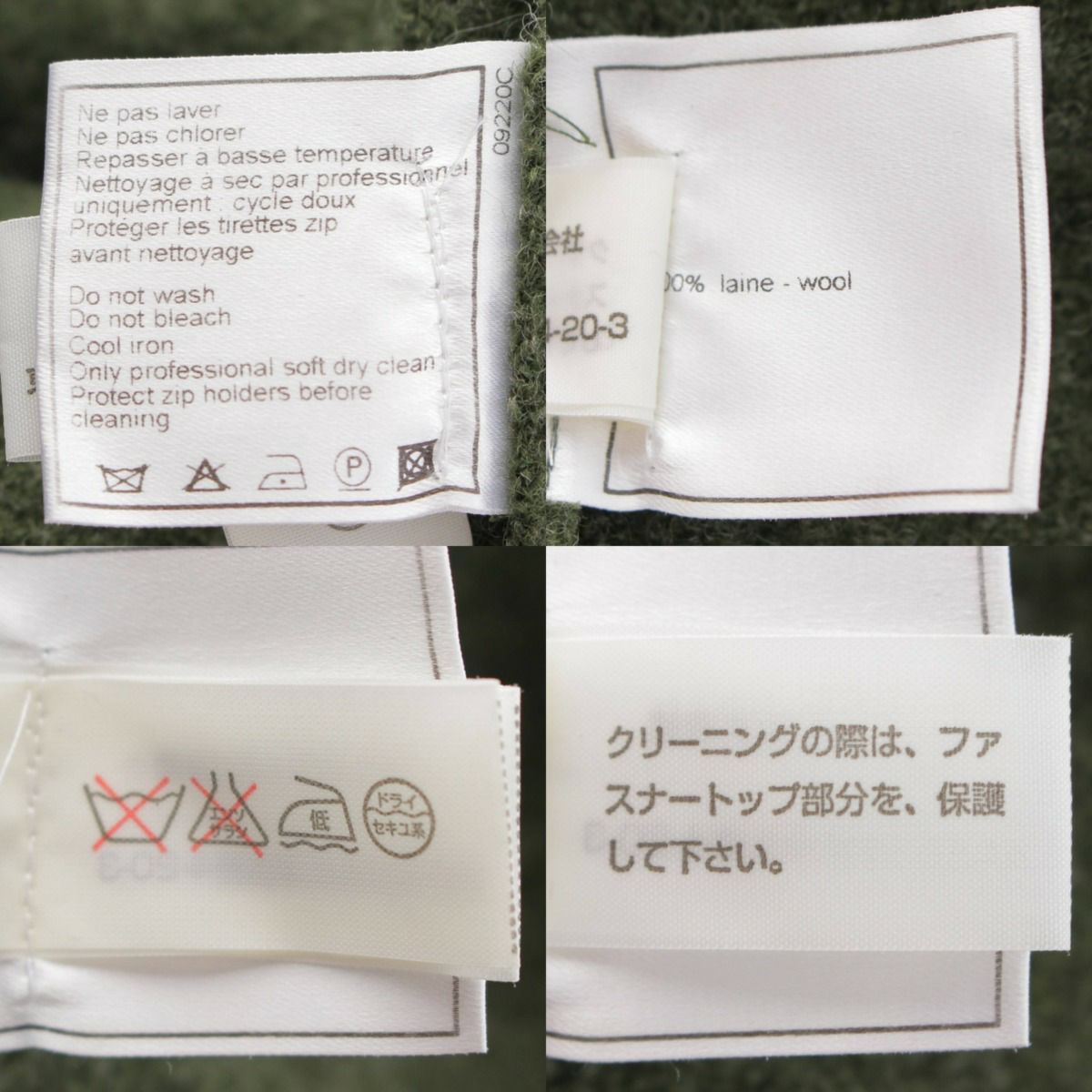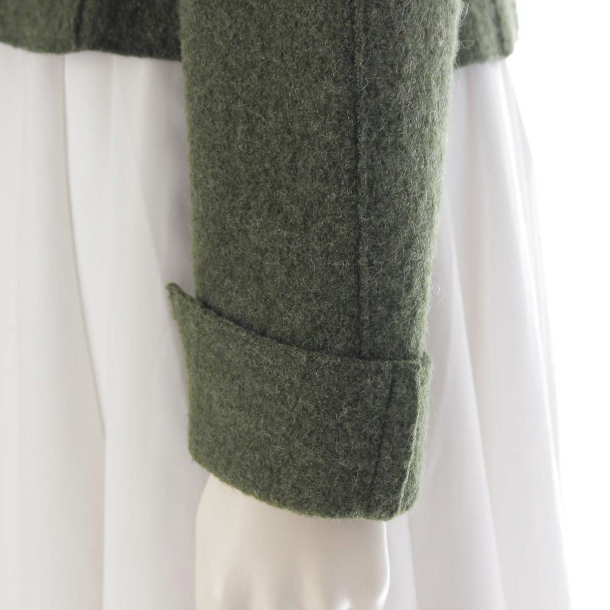 シャネル 99A IDENTIFICATION ノーカラー ウールジャケット P14025 ダークグリーン 42