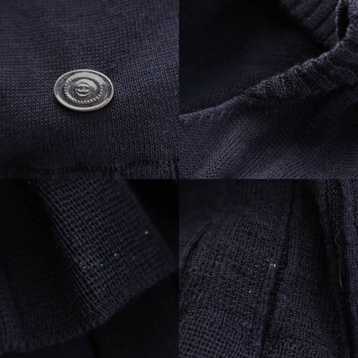 シャネル ココマーク リネン×ナイロン フリル ノースリーブ ワンピース P47975 ネイビー 40