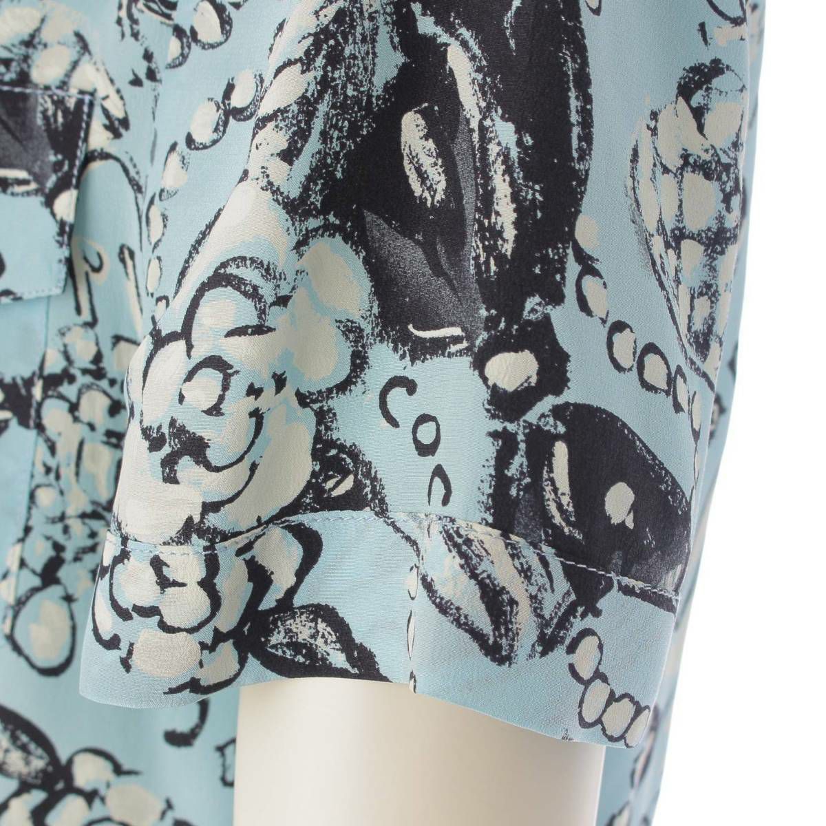 シャネル カメリア ココマーク パールボタン アロハシャツ トップス ブラウス ブルー