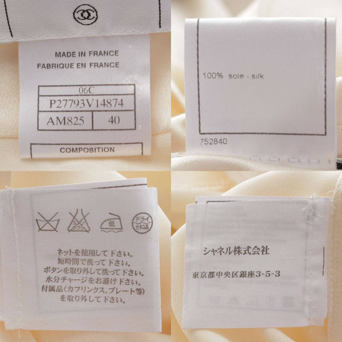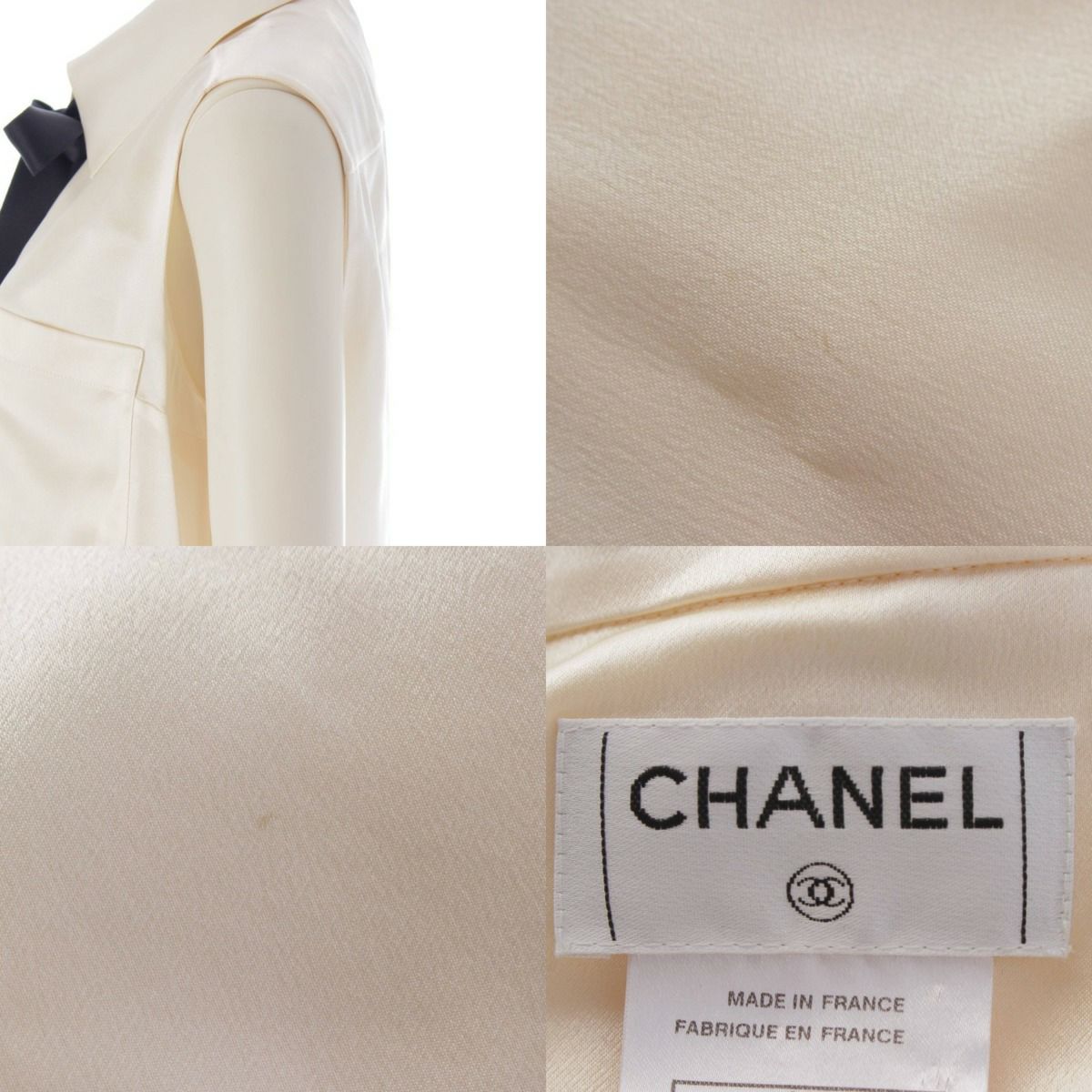 シャネル 06C シルクブラウス ノースリーブ カメリアリボン P27793 アイボリー×ブラック 40