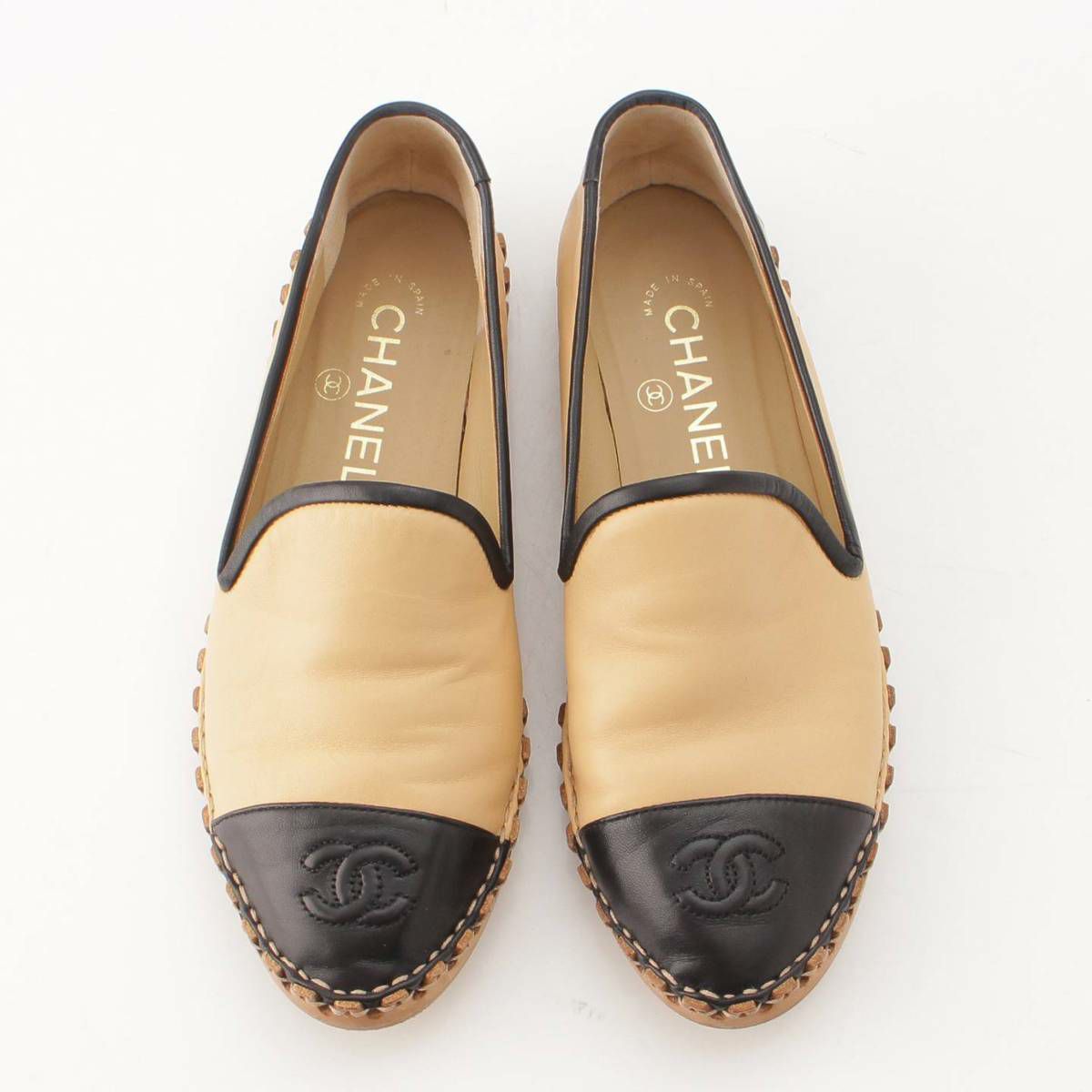 シャネル ココマーク エスパドリーユ フラット バイカラー オペラパンプス G34319 ベージュ 36C